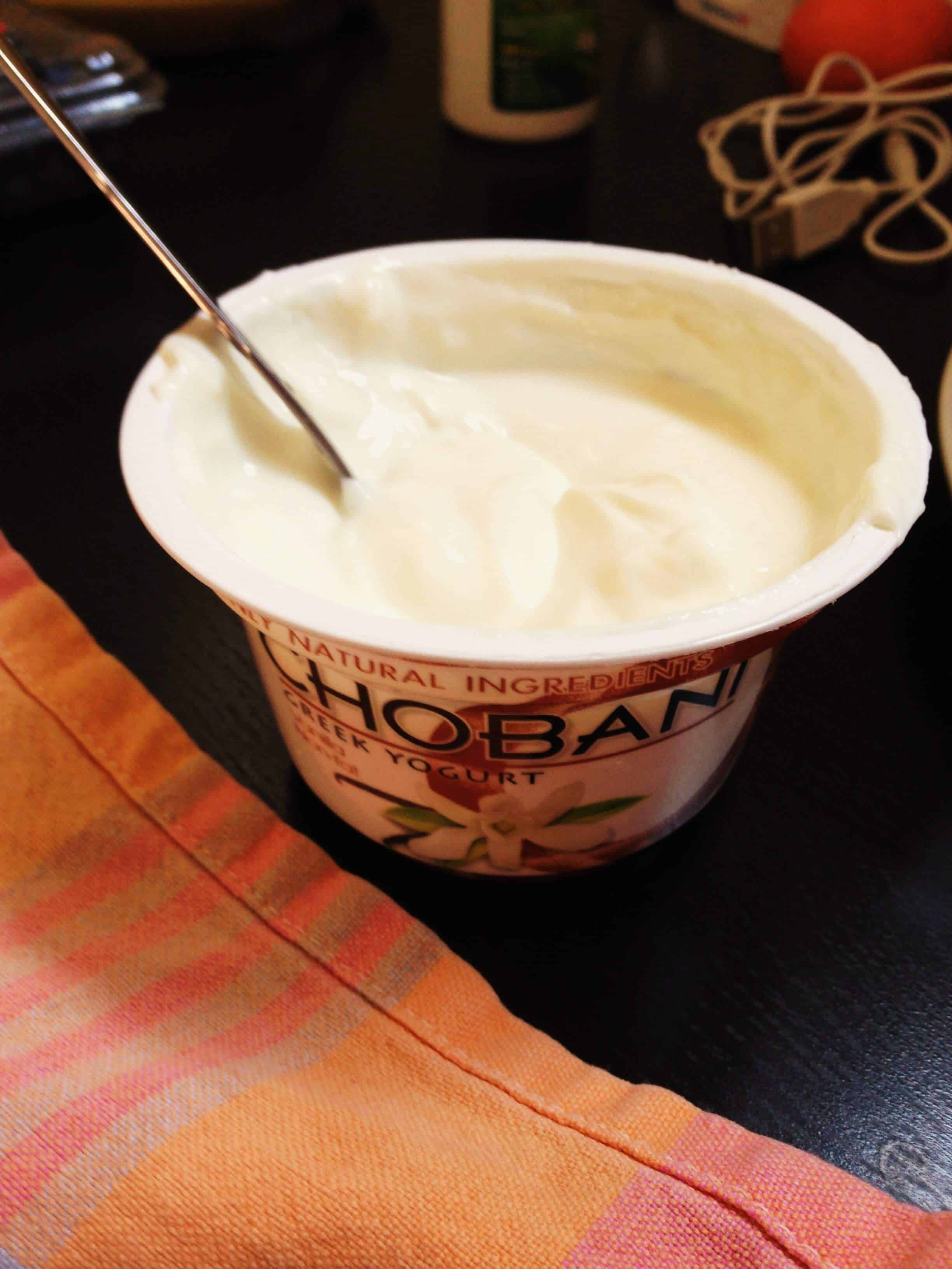 所以我洗掉我的蓝莓,并开始!我用蓝莓的一品脱和香草酸奶chobani一个容器。