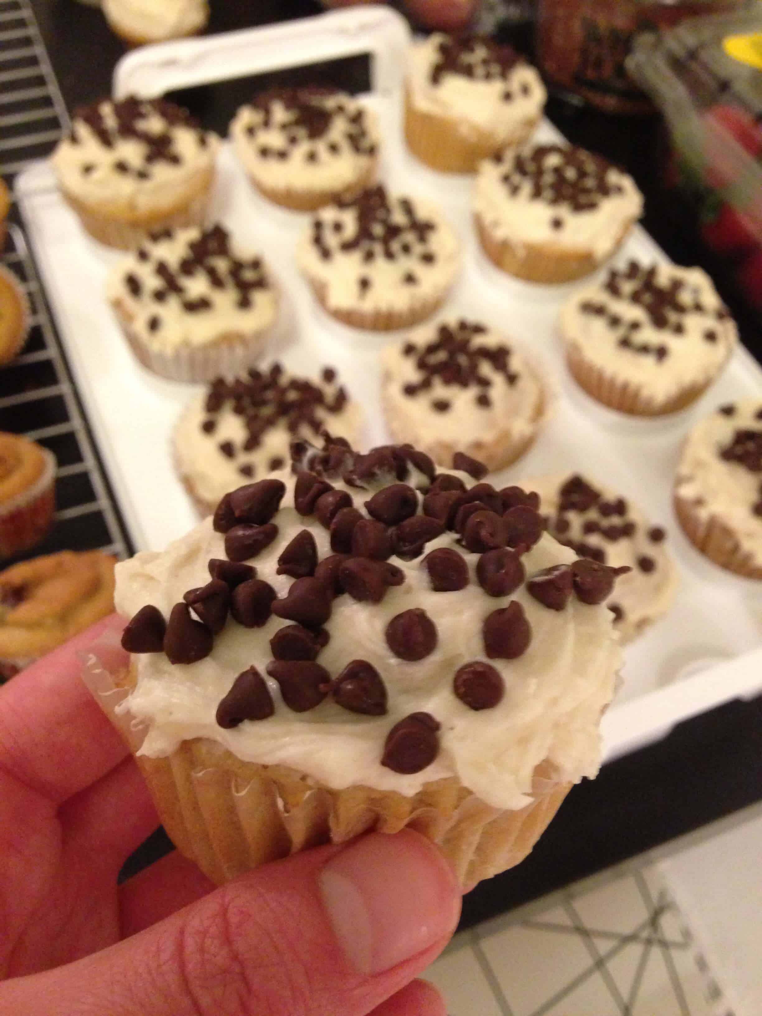 当蛋糕都凉了,我磨砂他们,并与迷你巧克力片洒他们!这产生约18个正常尺寸的蛋糕和36个迷你蛋糕......是的,他们都带上了永远霜冻。但他们尝到这么好,这是绝对值得的