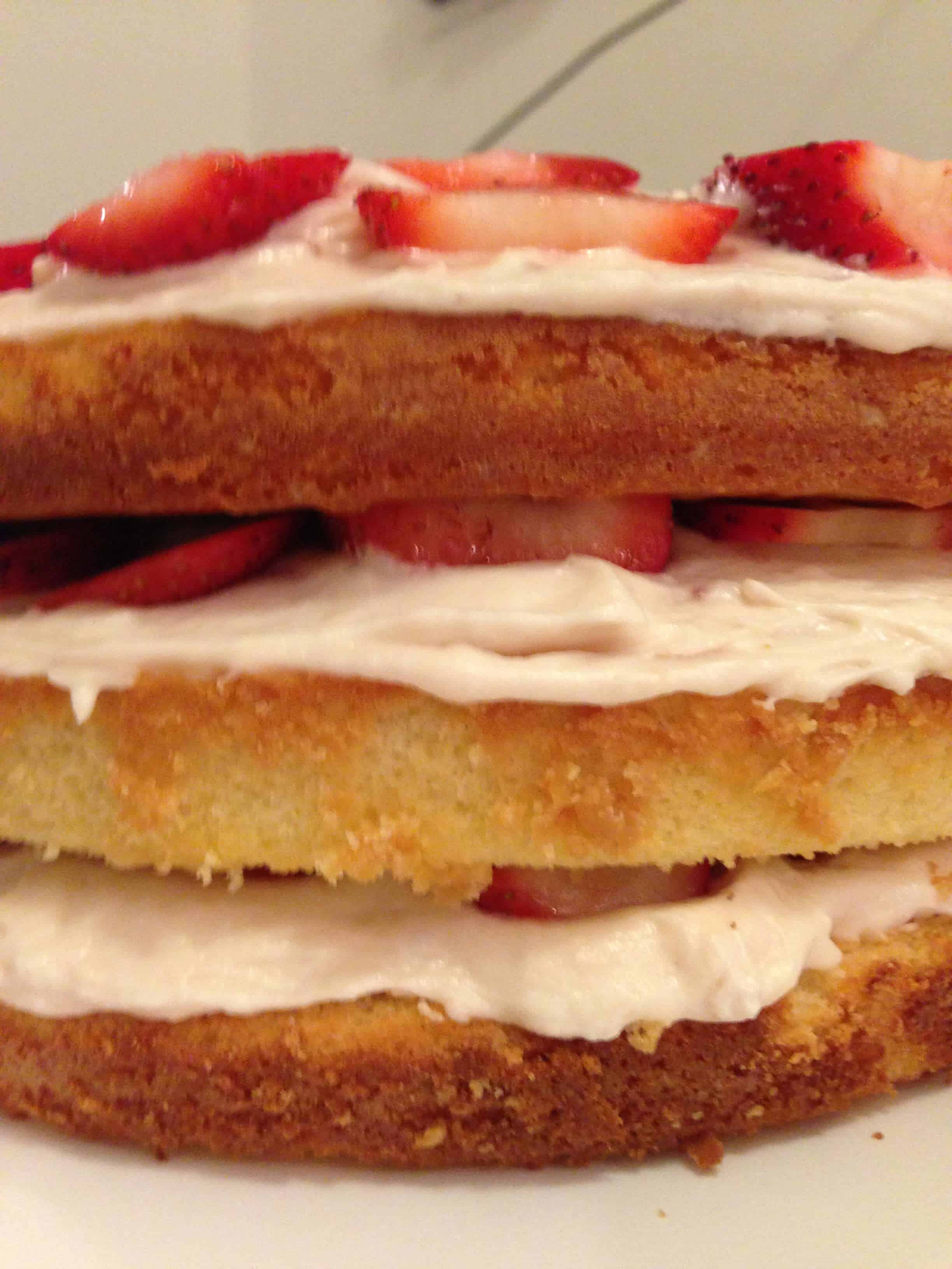 你把草莓放进面糊里了?我认为这就是问题所在!他们应该被放置在蛋糕层之间,在糖霜上面:/我很抱歉我的说明没有更清楚!!