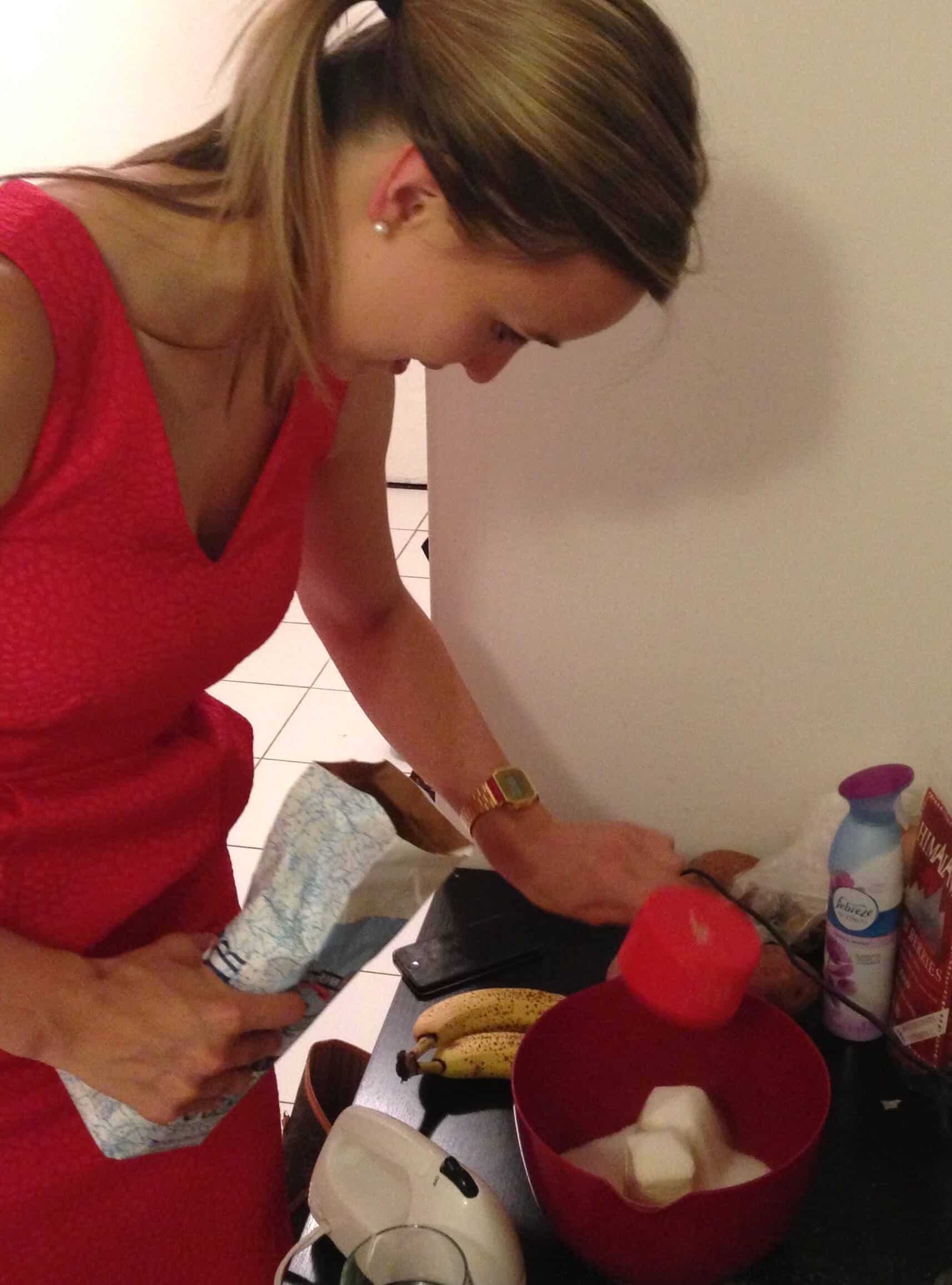 在一个中等大小的碗里,我把面粉、盐、发酵粉和小苏打搅拌在一起。在另一个大碗里,Uli将黄油和糖搅拌在一起,直到混合物变得松软。然后她把鸡蛋一个一个地加进去,每次加完都要打一遍。