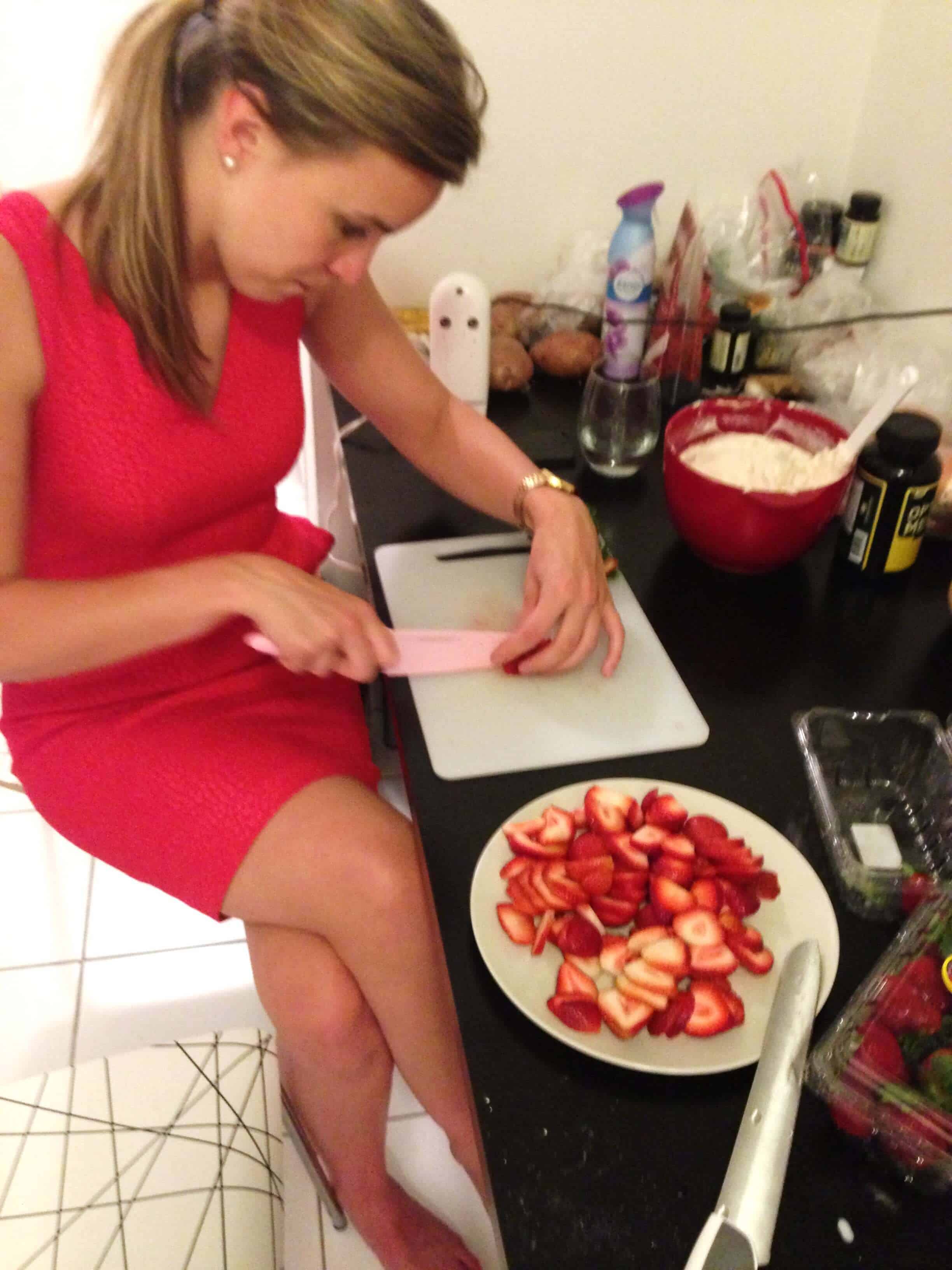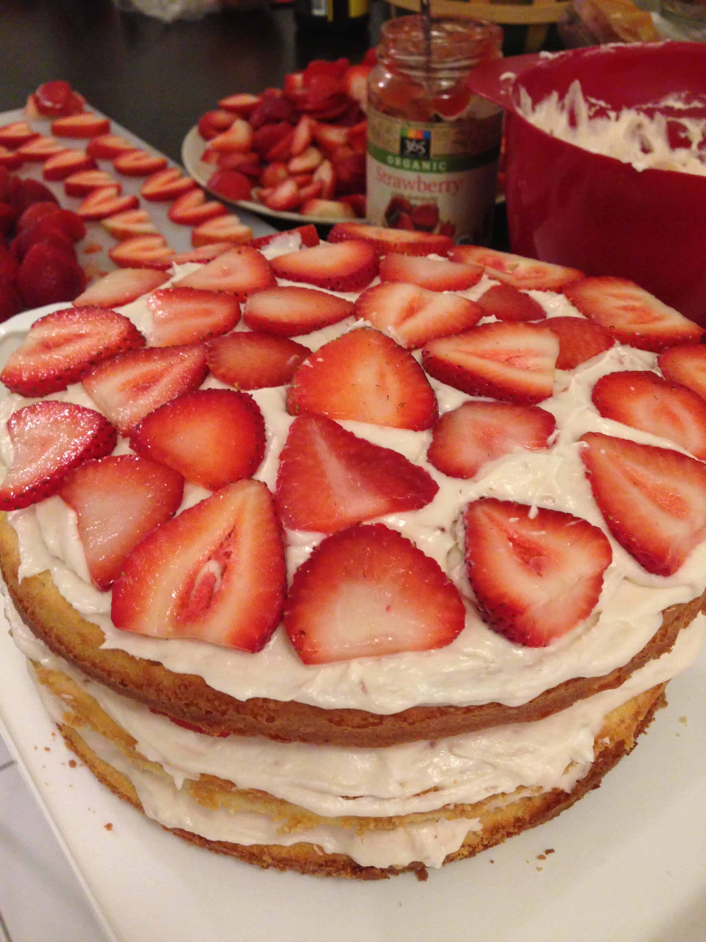 我发誓六月是每个人的生日!Including my own However, this cake was made for a fantastic senior manager on my team at work. I was lucky enough to have my friend Uli help me bake this cake! Uli is so much fun to bake with, and she always helps out SO much. After some googling and pinteresting, we ended up choosing this食谱。任何涉及新鲜水果蛋糕总是在夏天,在我的杂货店草莓一直在寻找美丽的最近的成分包括: