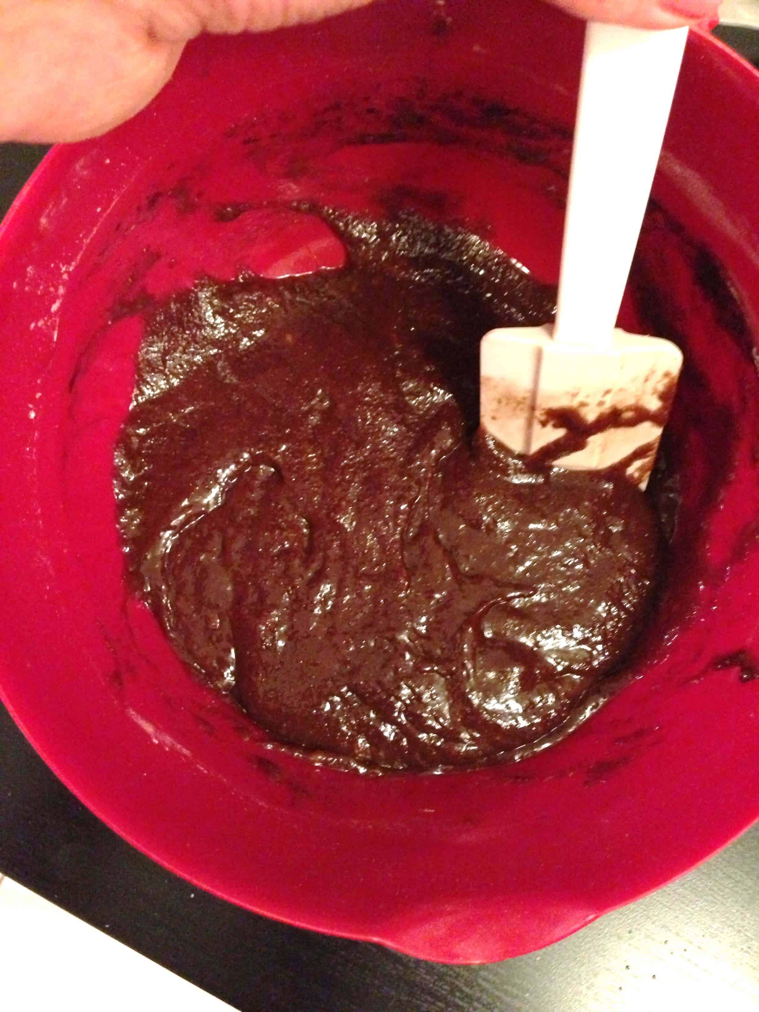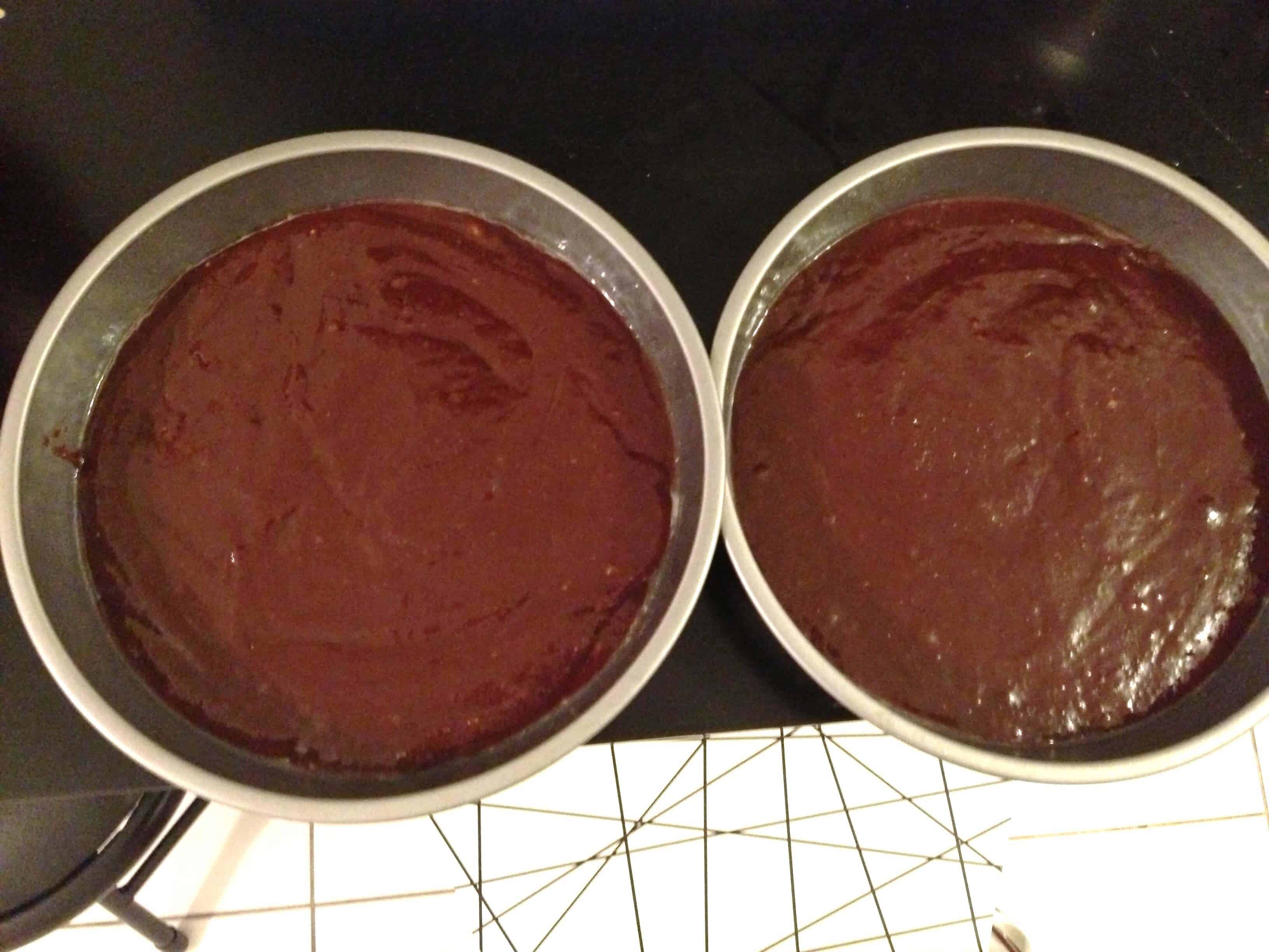 我开始润滑两个8英寸盘(弹簧扣平底锅将工作最好的,但所以我只是用9个蛋糕盘我没有任何),并衬有羊皮纸的底部,以便容易去除。我混在一起在一个大碗里所有的布朗尼成分和倒一半的面糊倒入烤盘每个。我让他们烤约12分钟左右,直到牙签出来干净,让他们冷却10分钟,将它们放置在一个有引线的架子前。