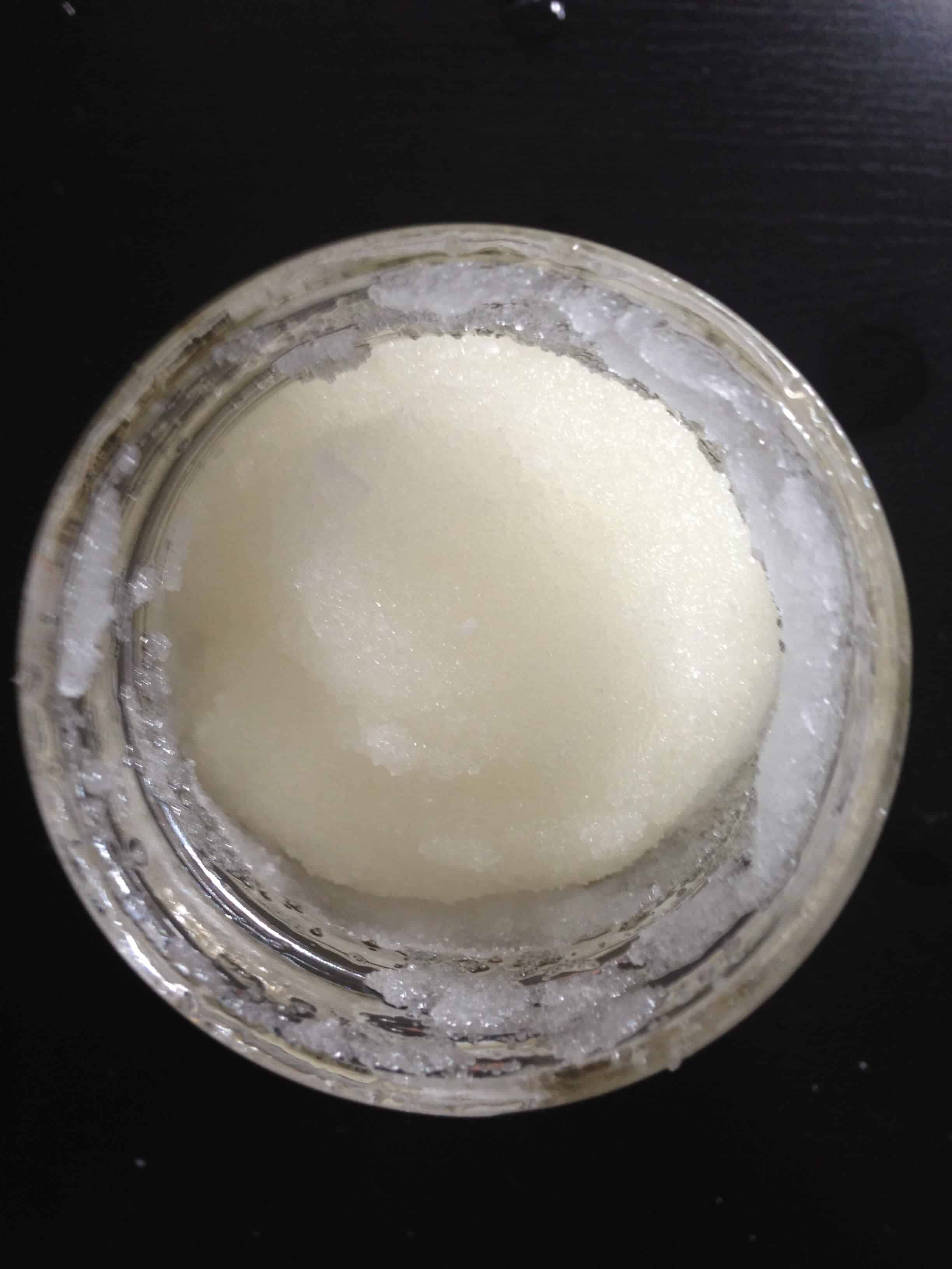 该指示说融化在microwave..But我的椰子油没有微波炉,所以我让我的阳光融化(因为它是超级热出今天)。一旦它被熔化,我与糖混合它,直到油被完全并入。然后我加入了椰子和酸橙油。这个配方使有关擦洗一杯。