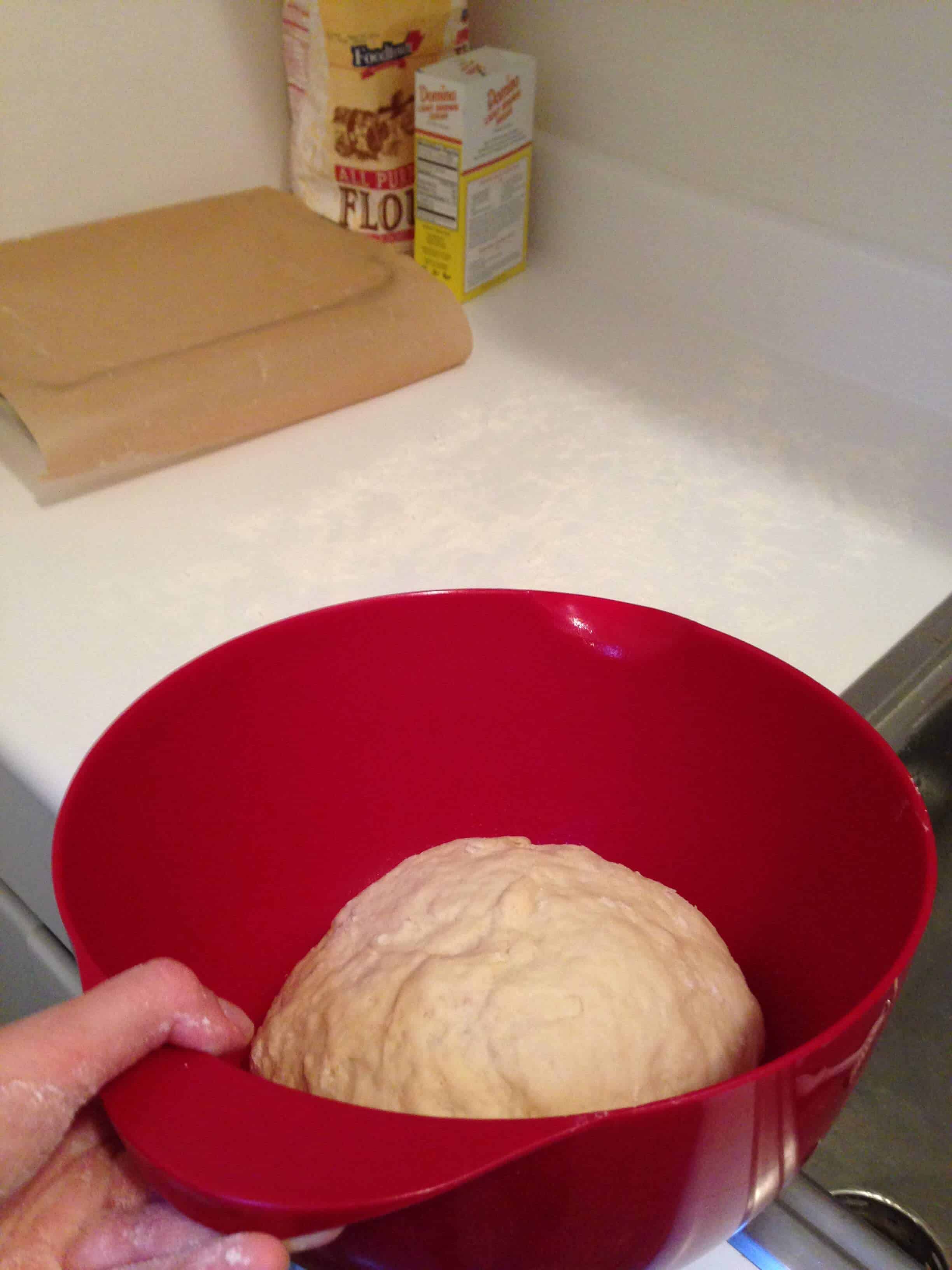 声明:我没有厨房辅助工具或站立搅拌器,所以我用手揉面团。