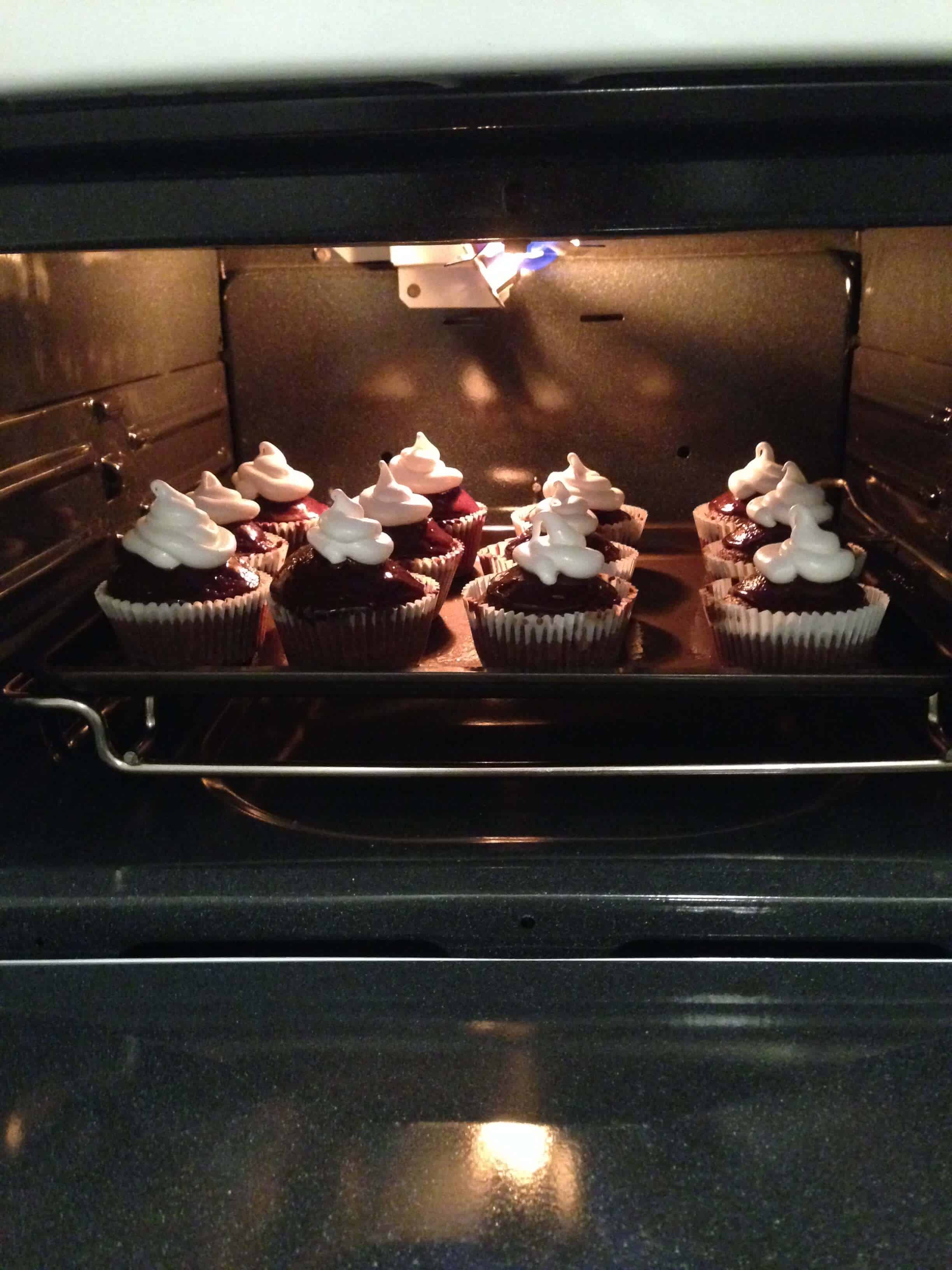将烤箱到烘烤并放置蛋糕上的cookie片在烤箱的顶架。离开肉鸡门微开,并保持眼睛的蛋糕为他们敬酒。留在肉鸡的蛋糕为1-2分钟,而一旦你看到的酥皮褐变immediently删除。