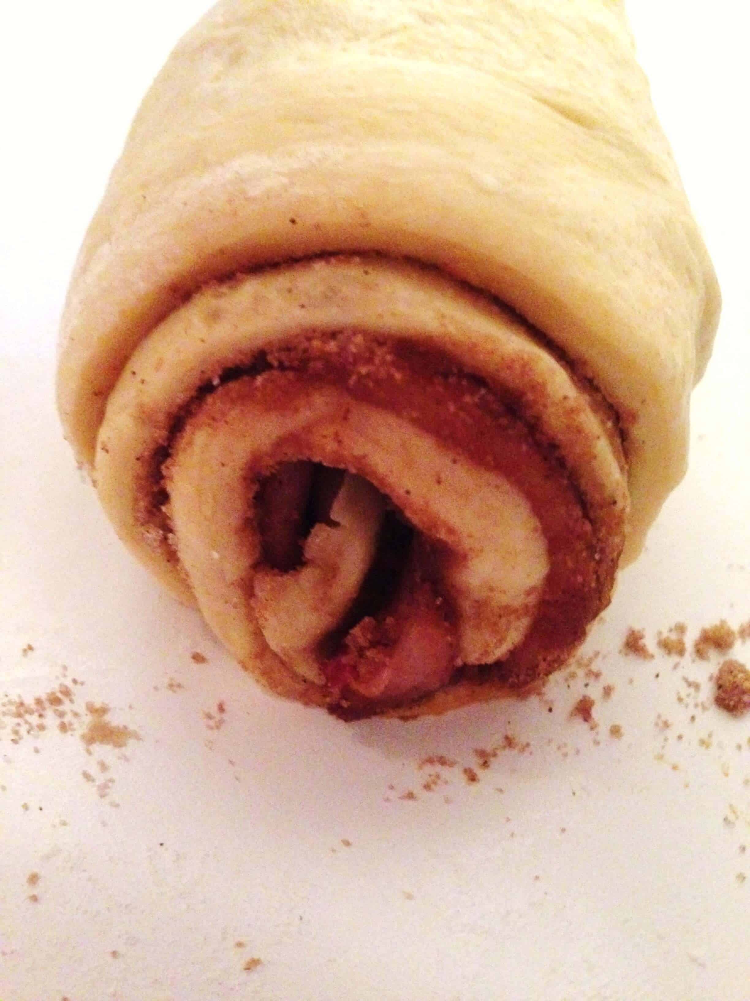 面团擀成一个紧日志,在底部平原面团整理到日志密封在一起。分数记录每1.5英寸,然后切片使用这些标记辊。确保使用锋利的刀。放辊与脂羊皮纸或箔衬的锅,留下约各辊之间一英寸。我让切割辊上升了一个小时,直到他们复活。
