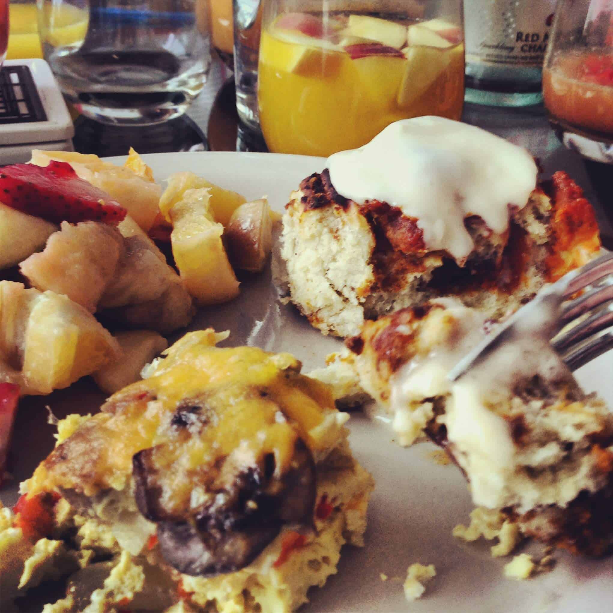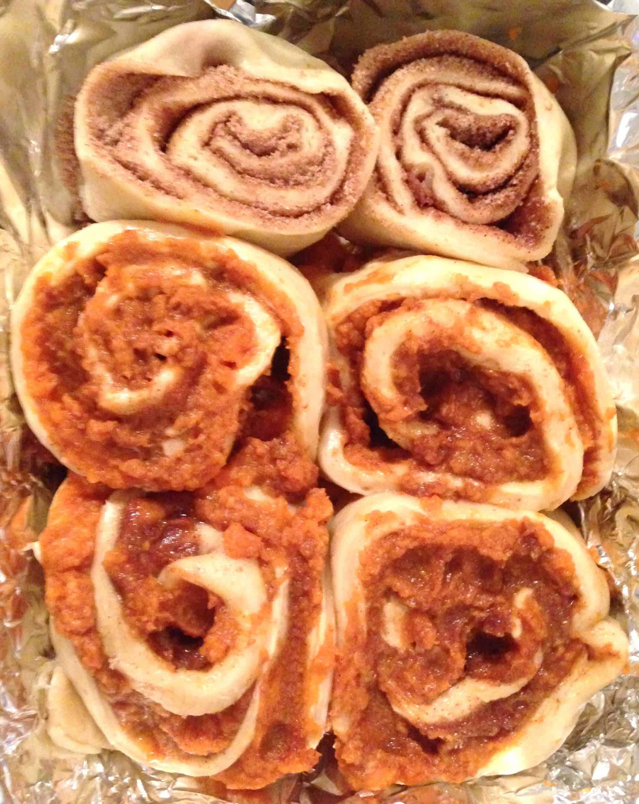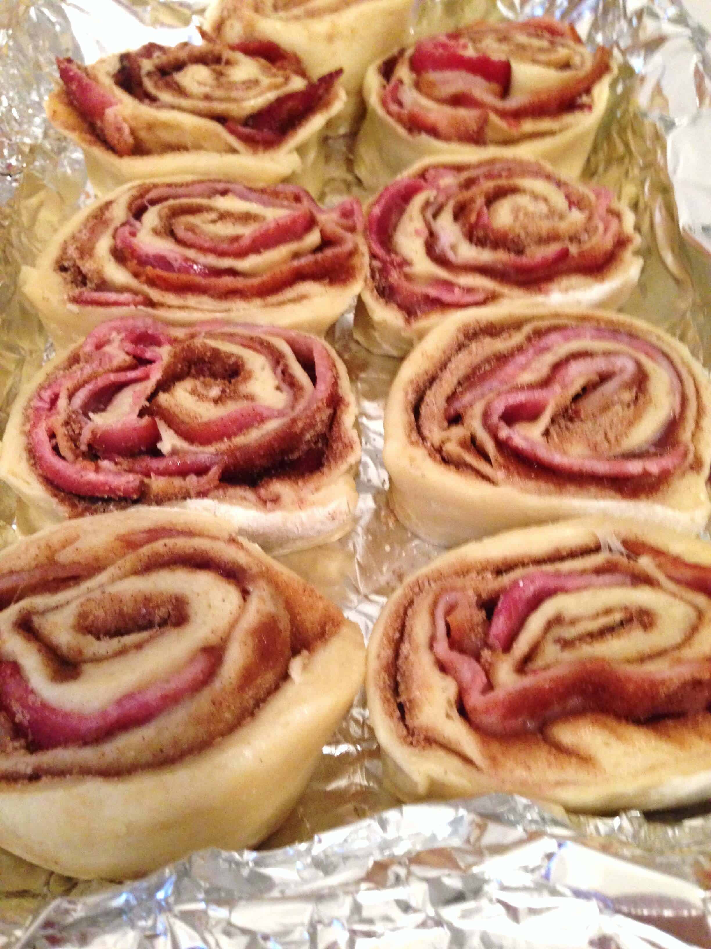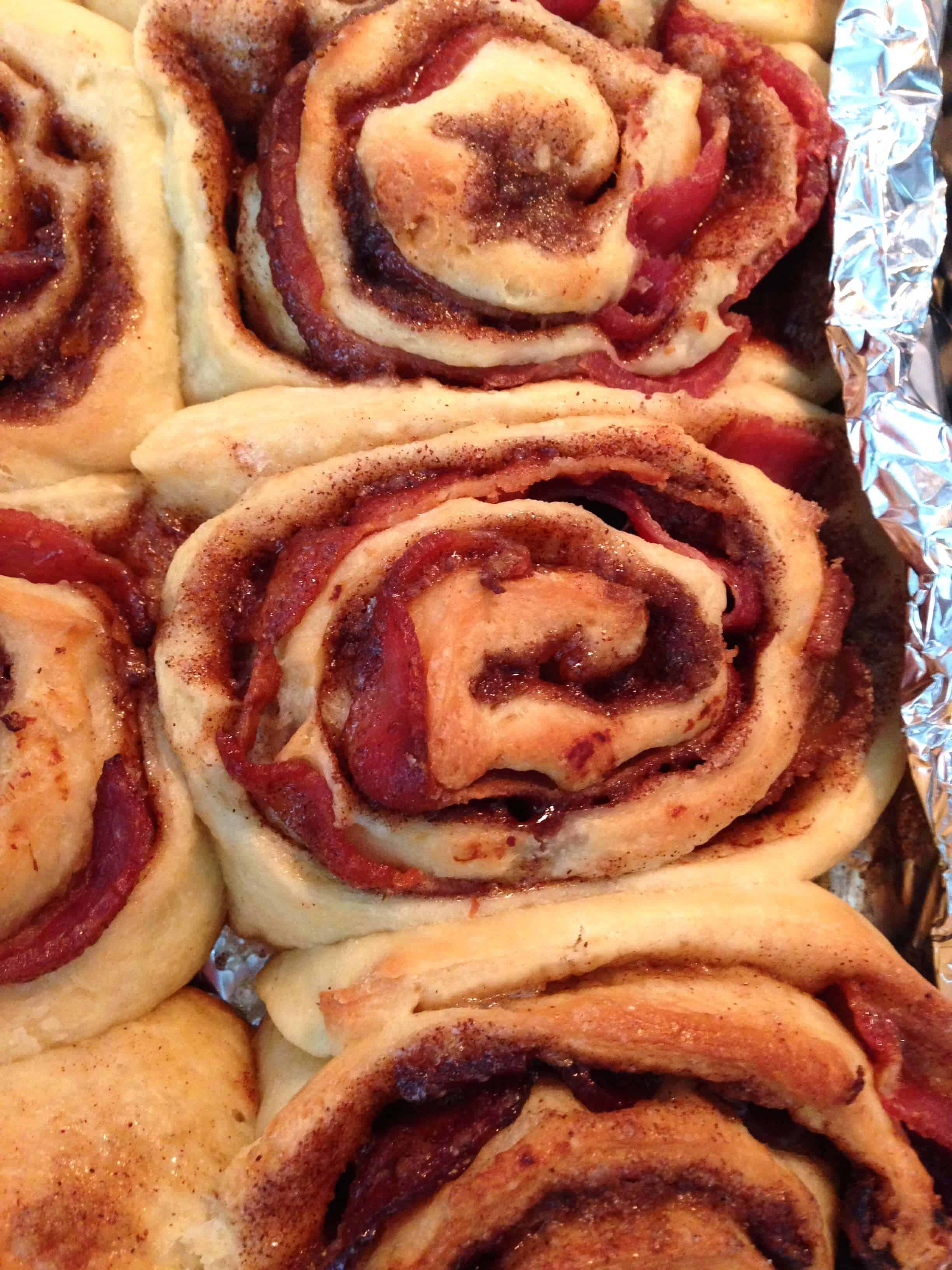 大量的规划和协调后,我的朋友德鲁和我终于能有一个UW早午餐!我们的朋友Kelcey在城里,和一大群我们能走到一起这个星期天,迎头赶上。我的室友萨拉和我决定把肉桂卷和辛辣的蛋烘。我选择尝试一些肉桂卷的变化,并用我最喜欢的肉桂卷食谱的位置。我塞进他们的一半熏肉,并用南瓜饼馅充满了休息。包括成分: