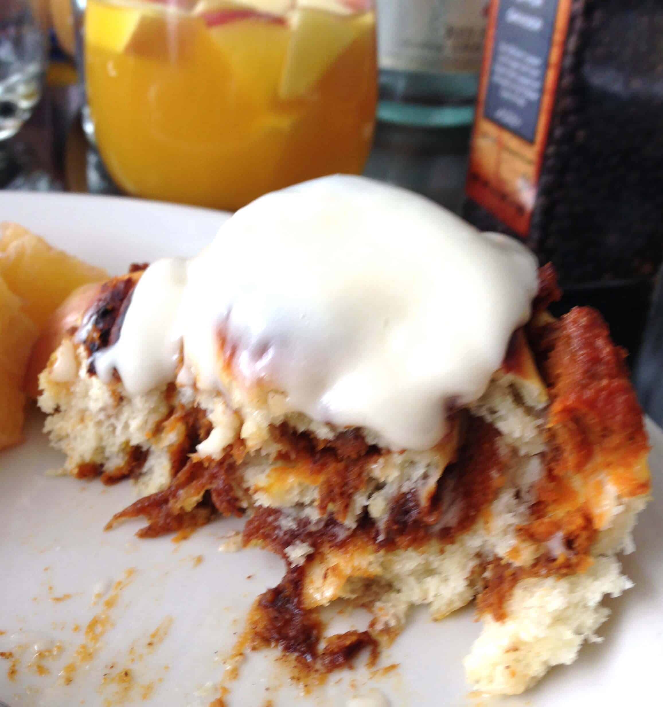 在350度的温度下烤30分钟,直到它们开始变成棕色。一出烤箱就立即冰冻。我尝试了南瓜派的变体,因为这是一个新食谱。真正制作肉桂卷的是烟熏枫木波旁威士忌。它把糖霜带到了一个全新的水平,是如此美妙的结合肉桂卷的变化。YUM !一想到这些我就流口水了。