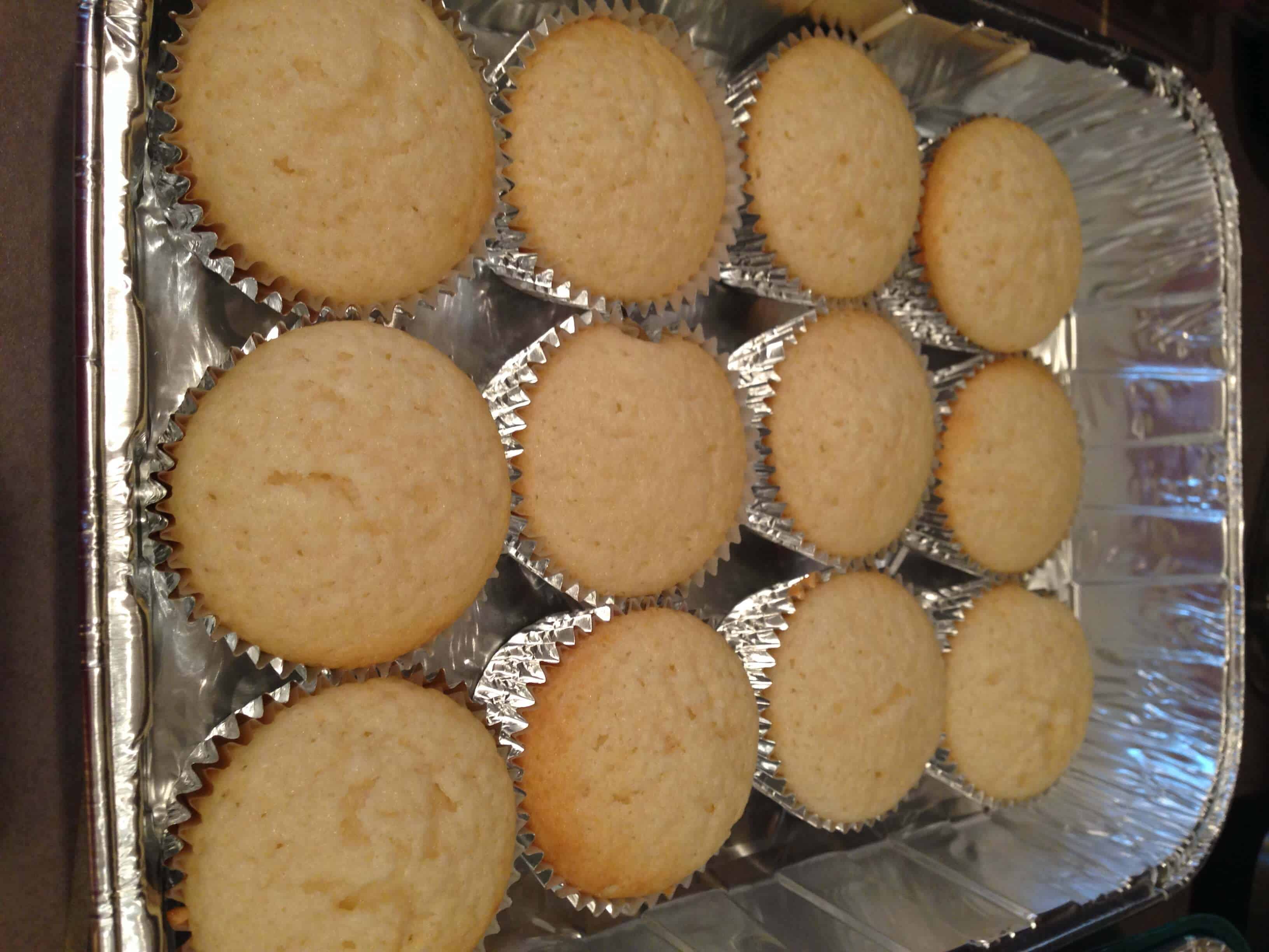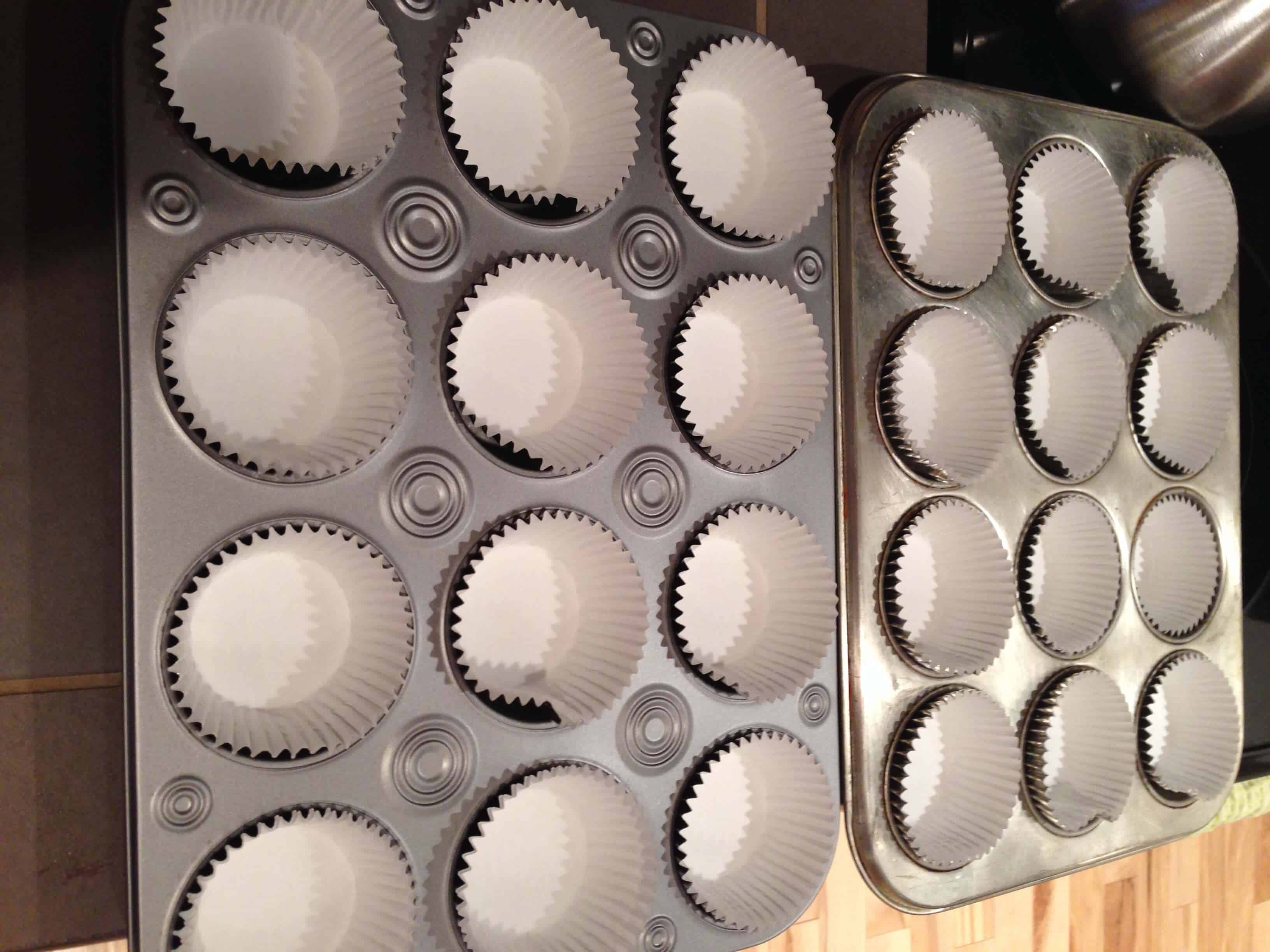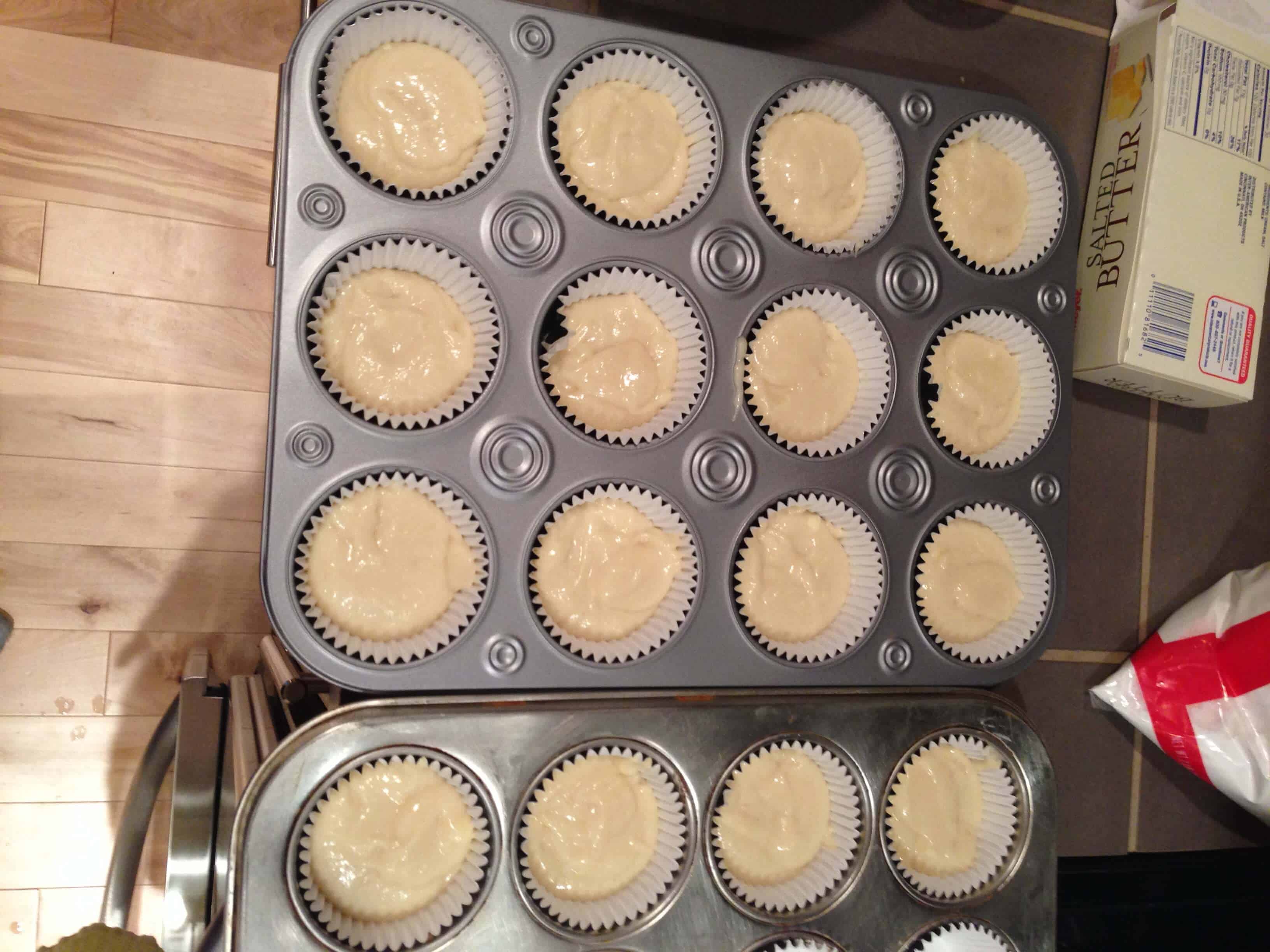 填写蛋糕衬垫一半,确保每个衬里面糊的量相同。烘烤15-17分钟,直到边缘才刚刚开始褐色。让蛋糕冷却在锅里5分钟,然后转移到一个电线架完成冷却。