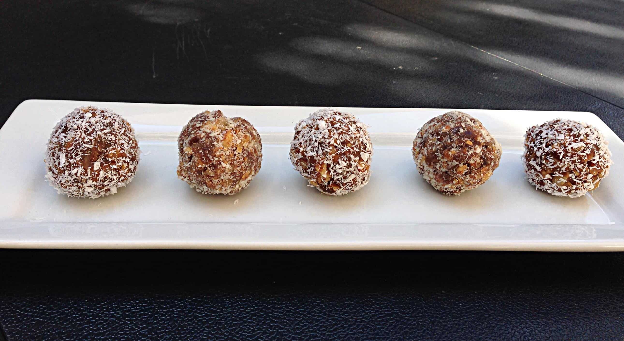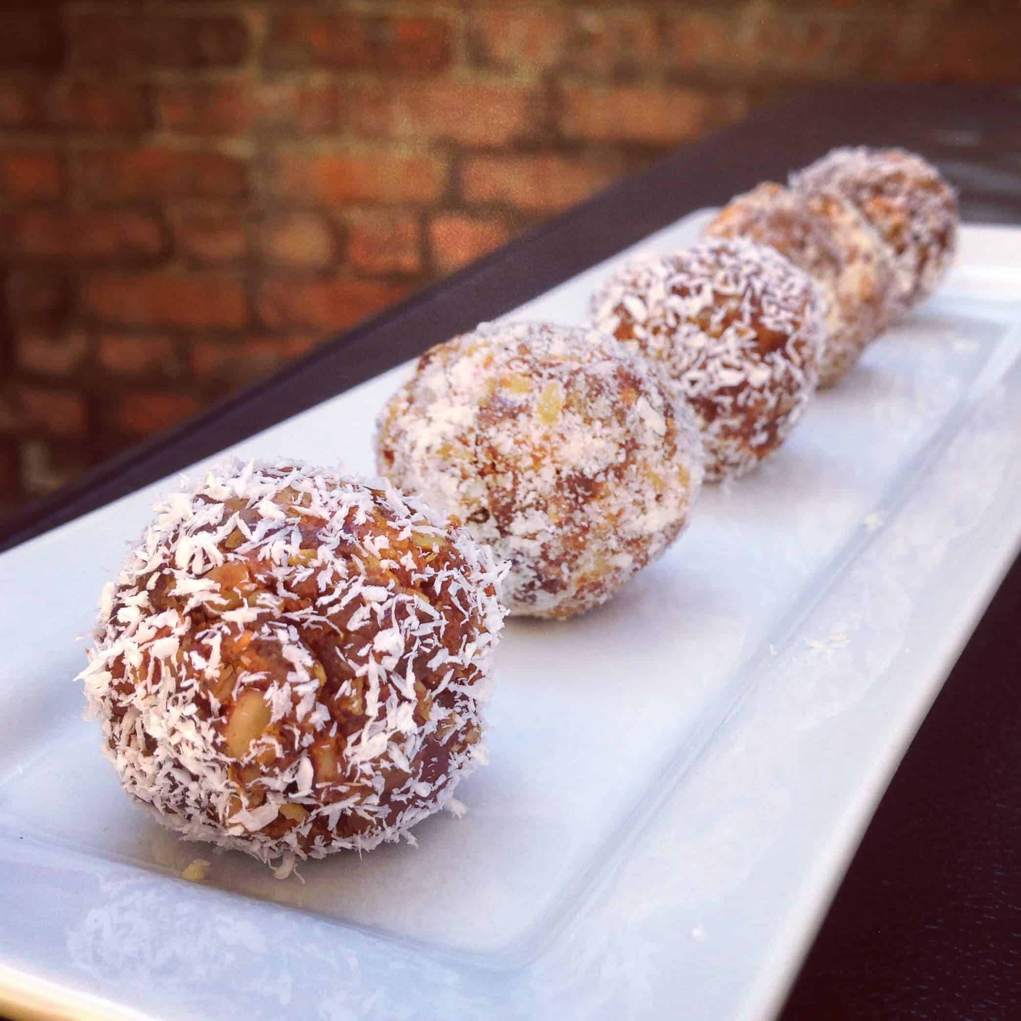 冷藏1小时,然后用手掌轻轻捏出3/4英寸的小球。用你喜欢的任何配料来卷球,我试过椰子和杏仁粉。我最喜欢椰子皮!
