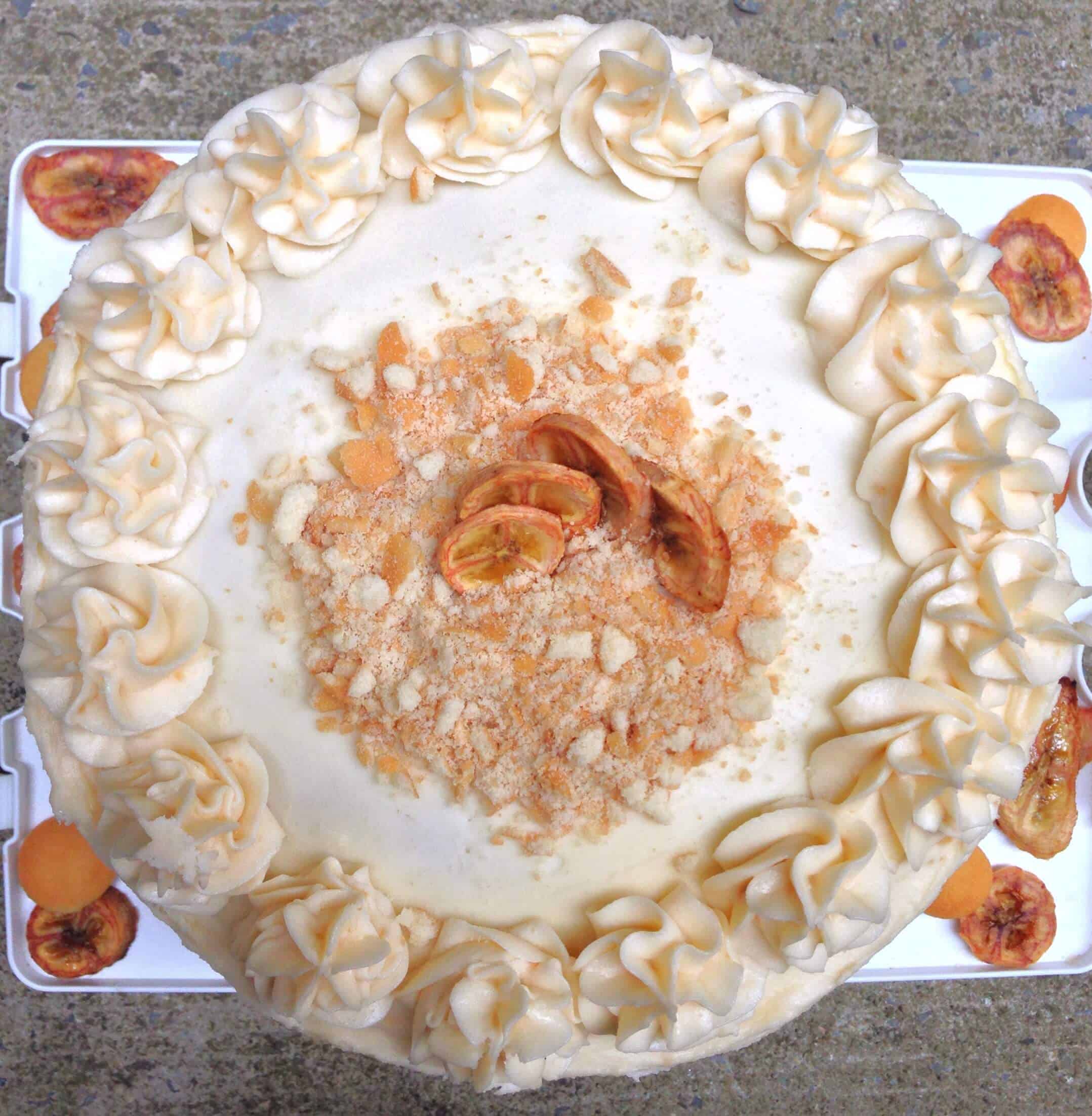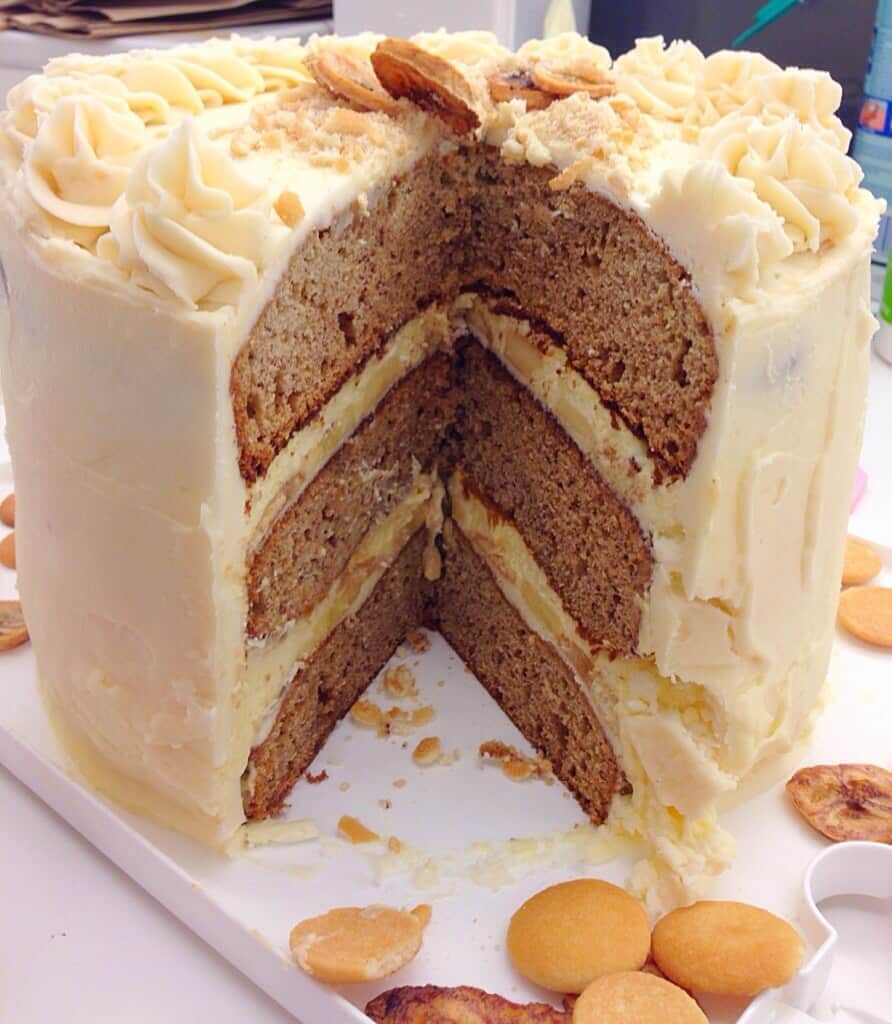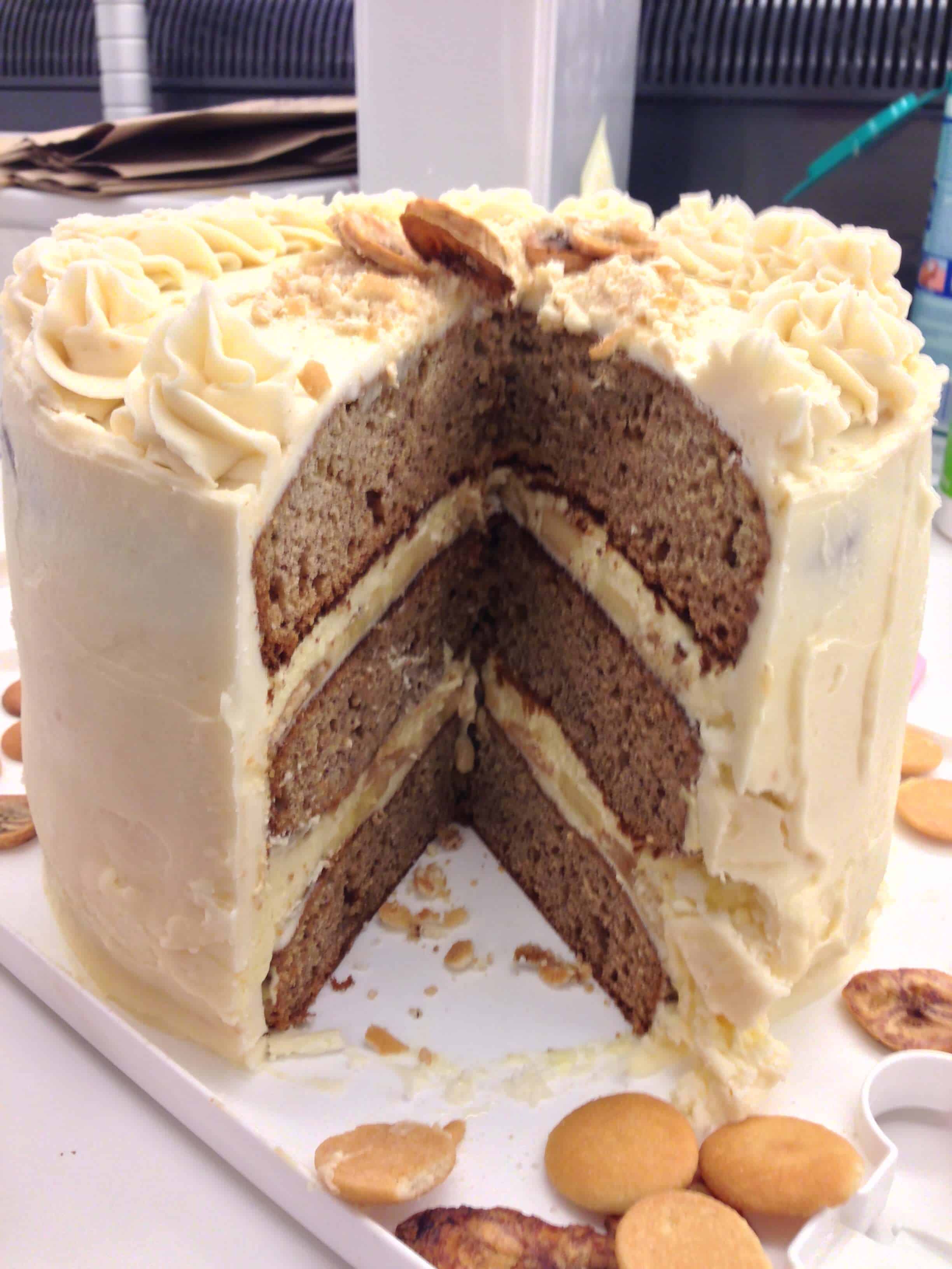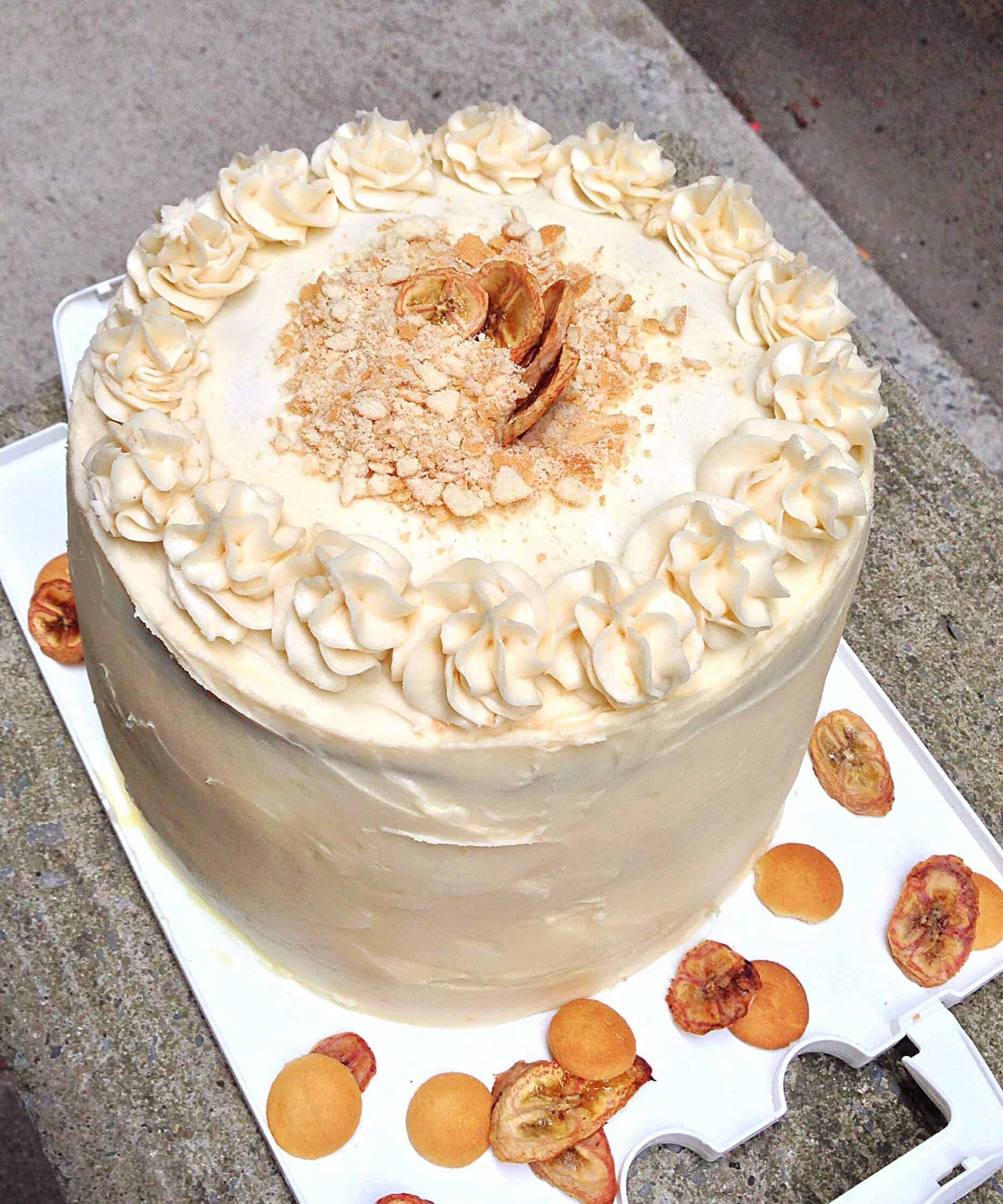 这周我收到了一个我最感兴趣的生日蛋糕请求,我对此非常兴奋!自从去年发现了木兰面包房(它是一款很棒的香蕉布丁)后,这款甜点就在我心中赢得了一个特别的位置。我决定把我过去做过的三件东西结合起来,做出这个巨大的蛋糕:my猴子蛋糕基地,我的木兰烘焙仿猫香蕉布丁,我的香蕉片。我决定提前一天做这个蛋糕,这样Nilla wafers可以吸收布丁馅,就像传统的香蕉布丁食谱所要求的那样。我还减少了制作布丁的用水量,以使布丁变稠,帮助蛋糕稳定。