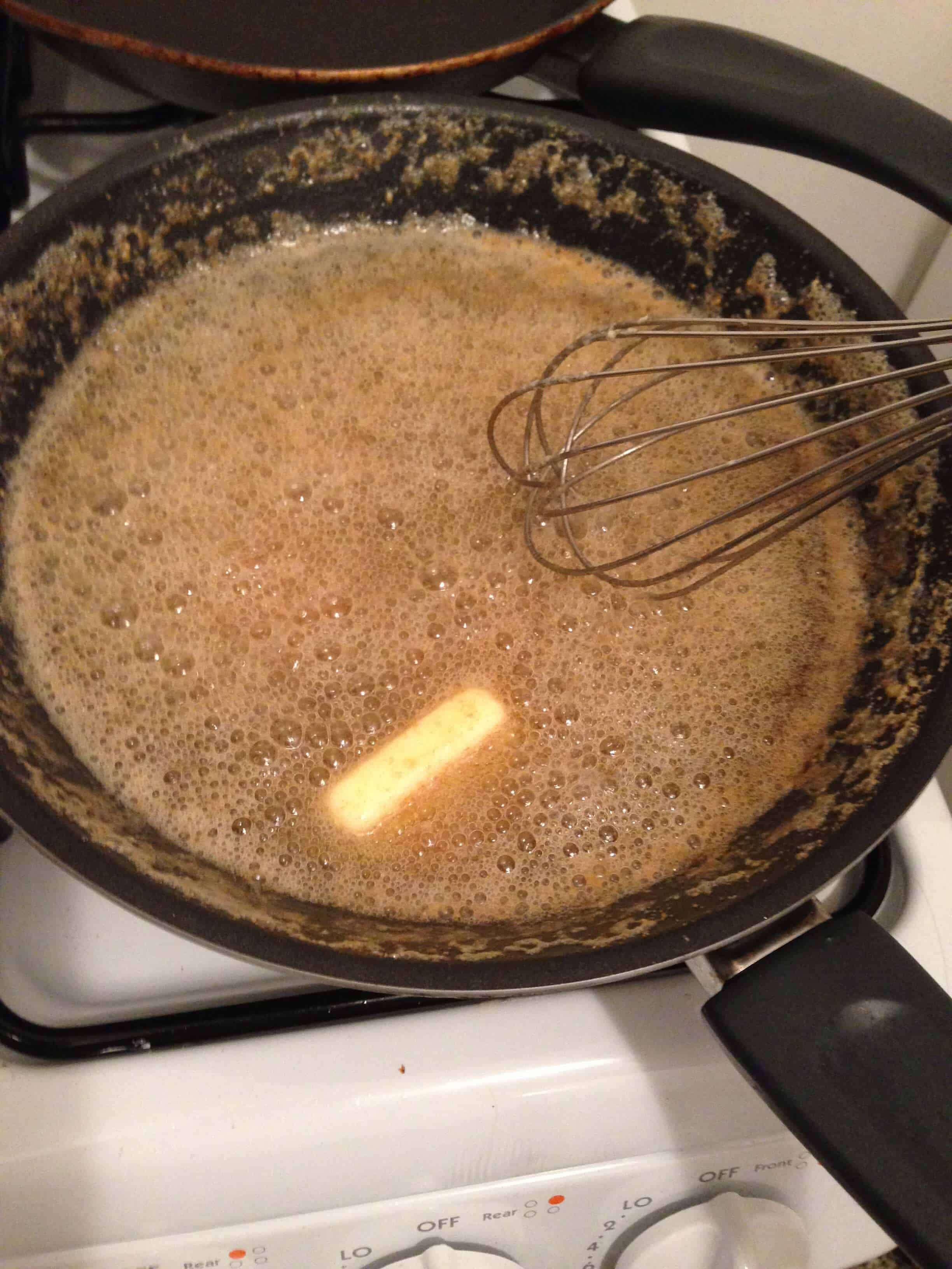先把黄油变成棕色。在平底锅中用中火融化黄油,直到它开始起泡。在这个过程中,确保你的搅拌一致。几分钟后,平底锅底部的黄油开始变成棕色;当黄油开始变黄并散发出坚果的香味时,继续搅拌并从火上移开。立即将黄油转移到碗中,以防止其燃烧,并让其冷却。