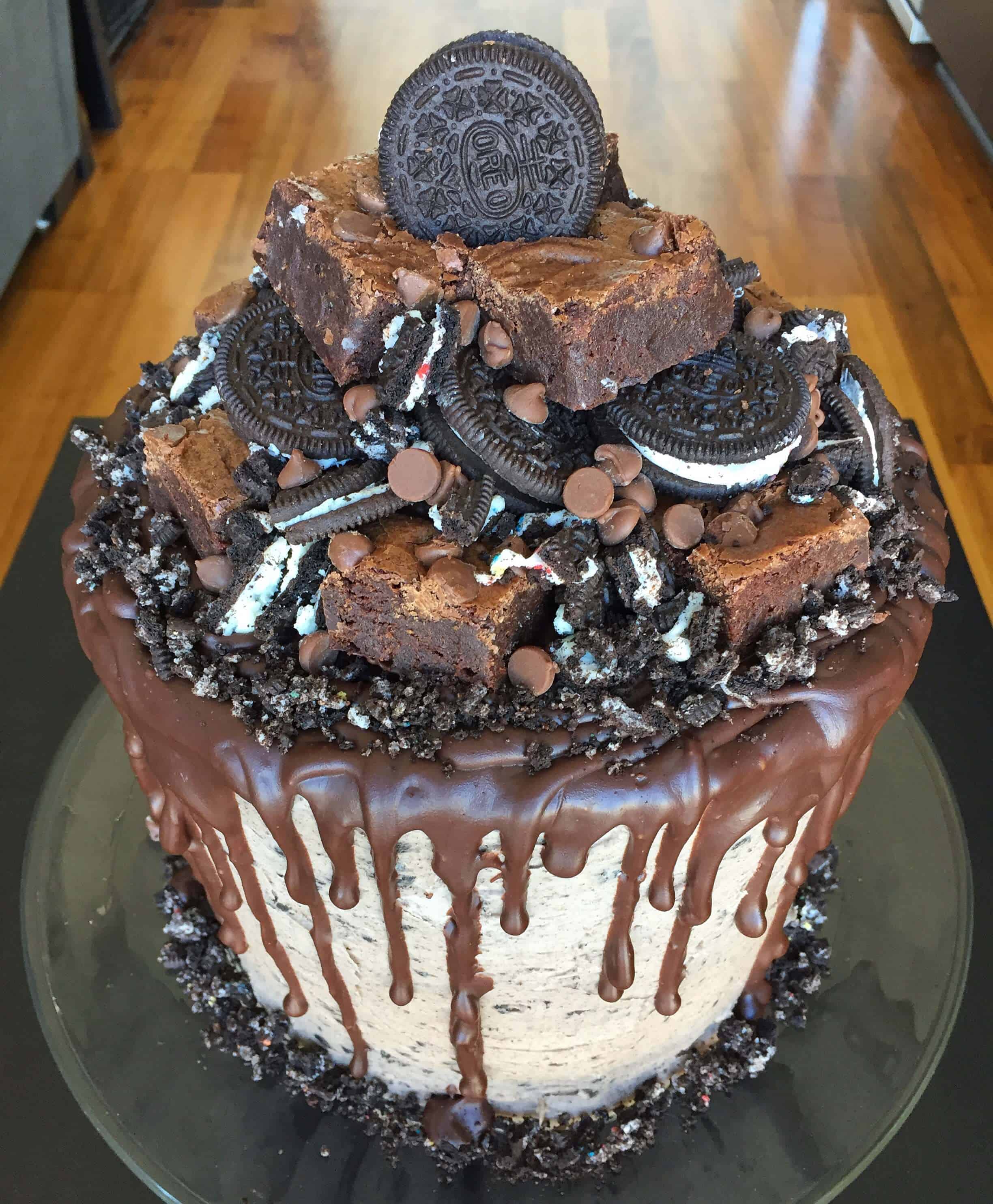 我先烤了几层布朗尼,然后是蛋糕,等它们凉了,我又搅起了奥利奥奶油。配方如下: