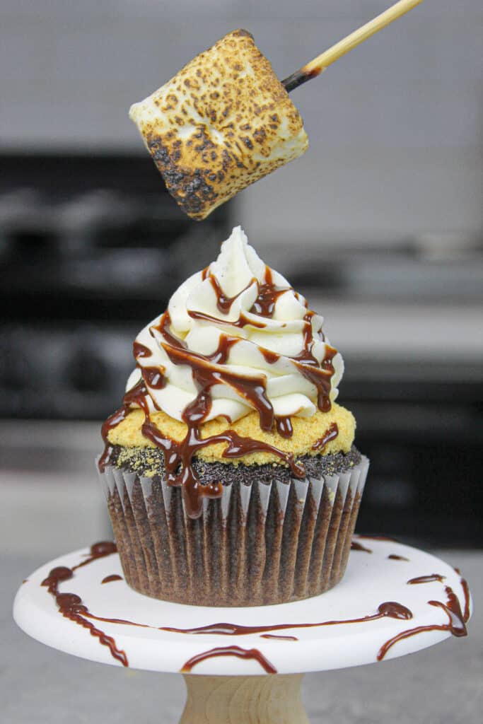 s 'mores纸杯蛋糕的最后一道菜是烤棉花糖。
