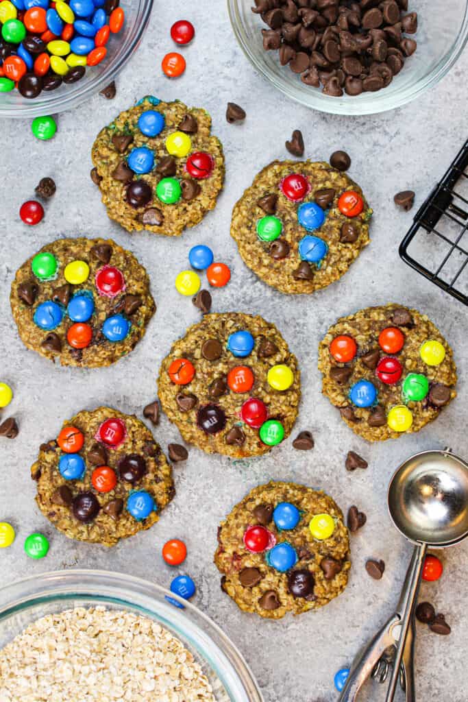 Or if you want these gluten free monster cookies to be dairy free or vegan, you can use素食糖果涂层巧克力。