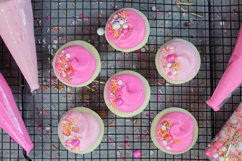 它还亮的颜色饼干给他们一个更轻的颜色。我喜欢这个,因为它确实帮助丰富多彩的奶油乳酪流行一旦饼干磨砂。