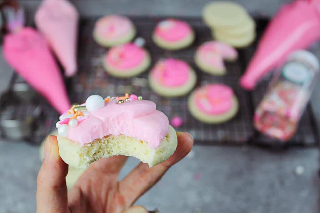 最终的结果是几乎像你使用蛋糕面粉在这个食谱!它创造了一个超级温柔的、化入口中、甜在心里的饼干。