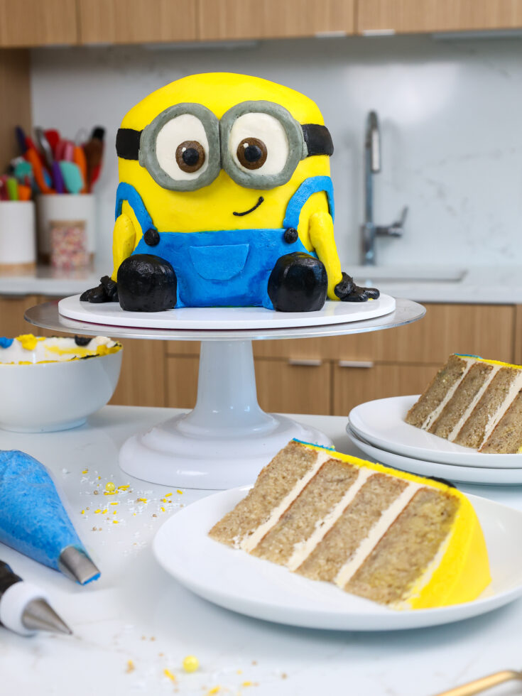这款奶油小兵蛋糕是用潮湿的香蕉蛋糕层和自制的奶油糖霜制成的。它很可爱!