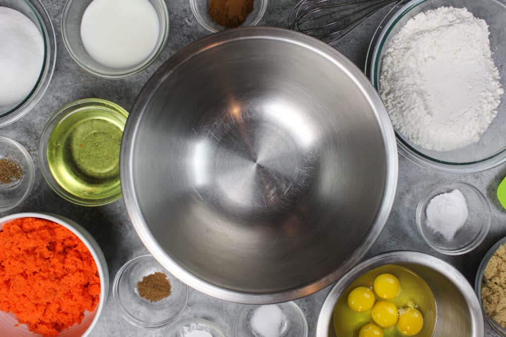 - 使用磨泥刨丝器分解你的胡萝卜成超细块!一点额外的工作,但它给蛋糕的口感