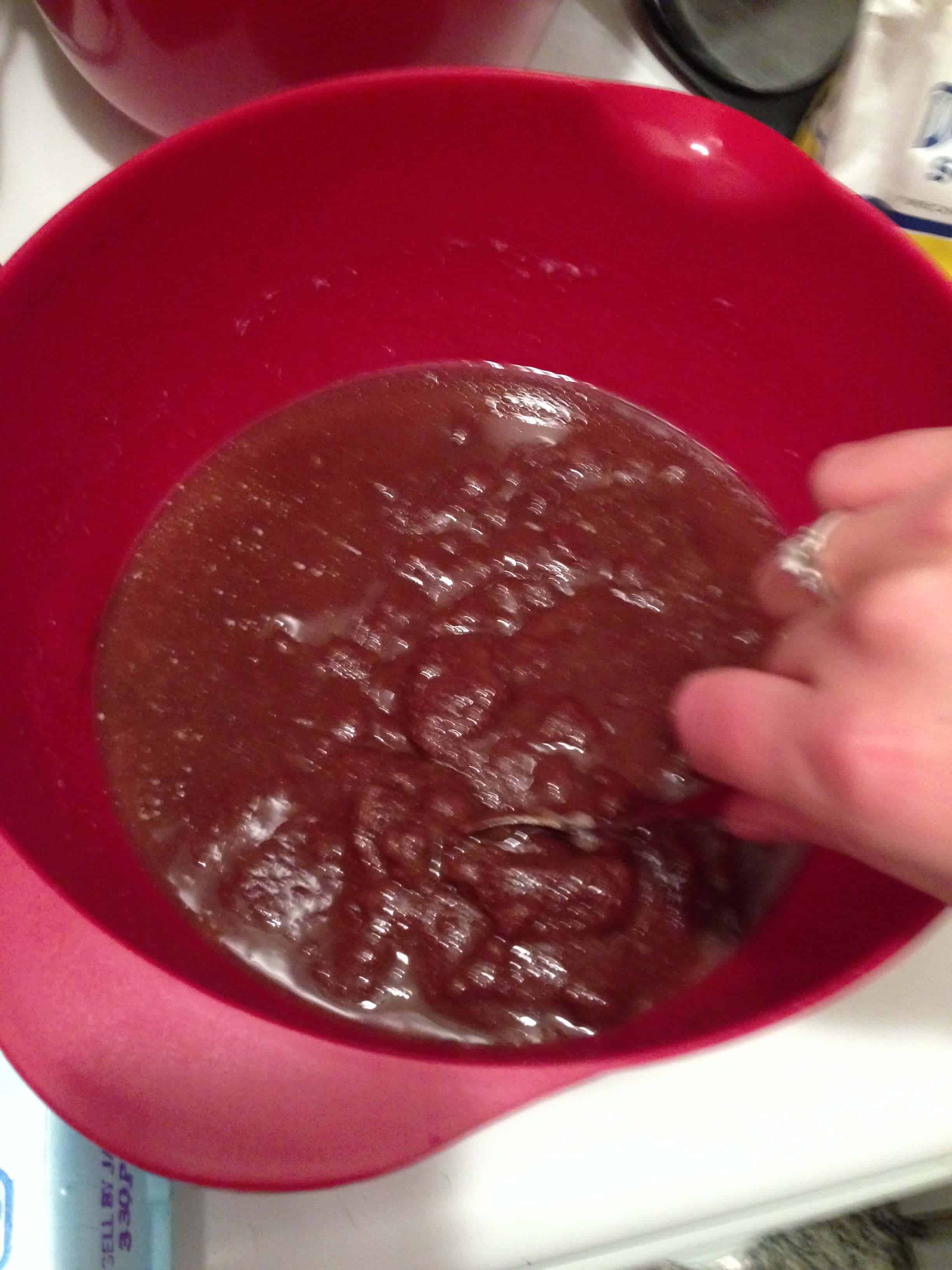 将烤箱预热至325度。在中等玻璃碗中,在微波炉中融化巧克力(以30秒的间隔搅拌),或在炉子顶部的低火上融化。融化直到部分融化为止,然后在您继续搅拌时让残留的热量继续完全融化巧克力。放在一边稍微冷却。在一个大的搅拌碗中,将黄油和红糖搅拌在一起。