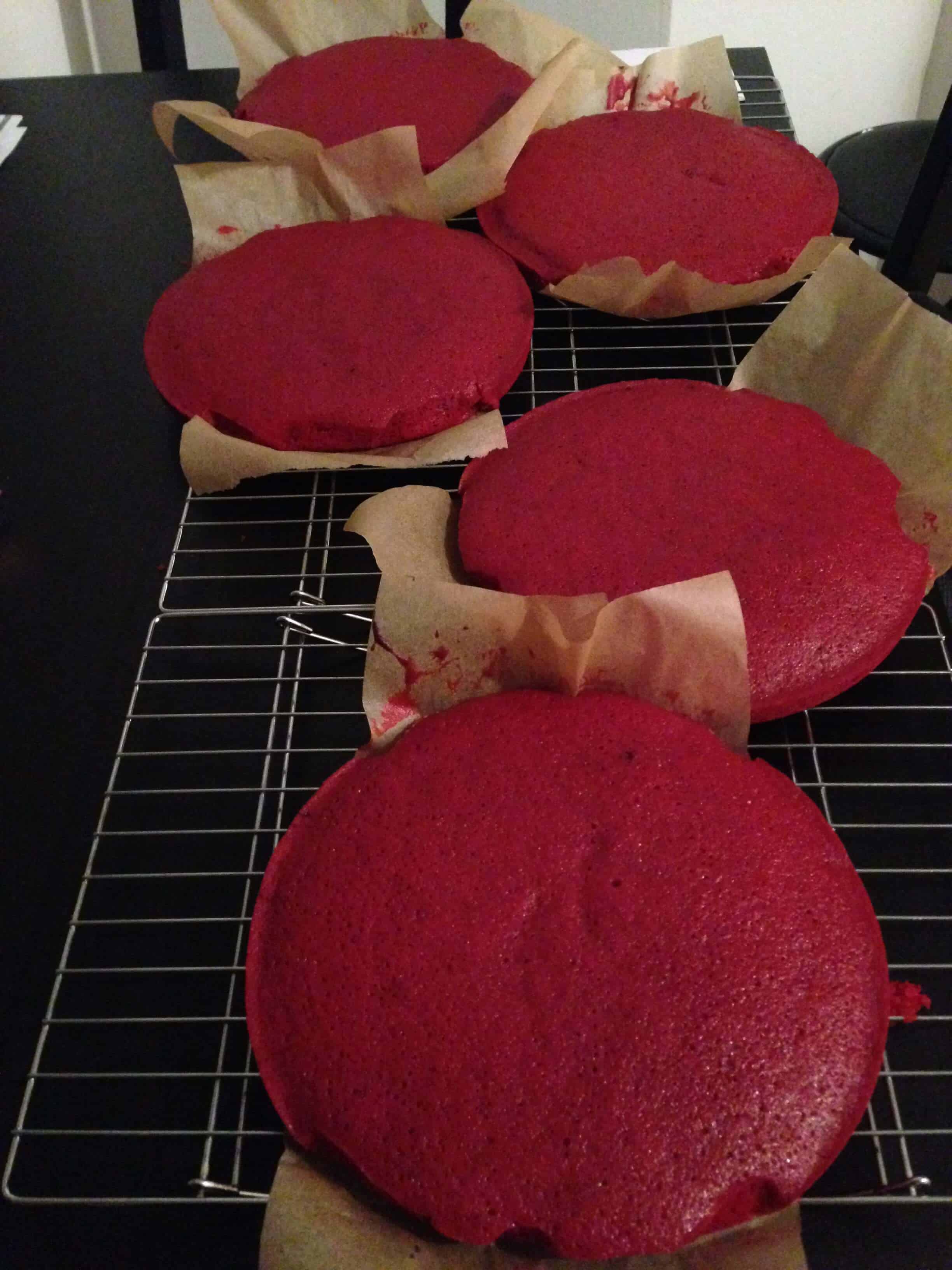 但不只是任何蛋糕。生日女孩要求红色天鹅绒……所以我做了很多研究,合并了几个食谱,扔了一点咖啡(听起来很奇怪,但很美味!),终于对我的红色天鹅绒蛋糕层的质地和味道感到满意!