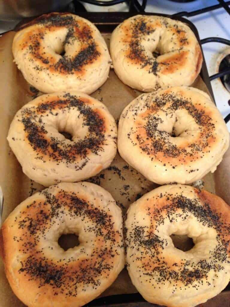 可以减半这个自制的百吉饼配方,只需一半的面团配料(不要煮沸的水或小苏打减半)。你也可以双翻这道菜的原料,但每次我推荐烤盘6百吉饼。