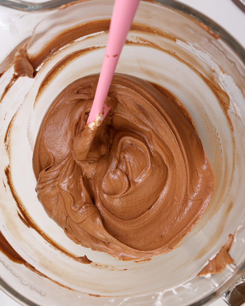 Mix the frosting on the lowest speed with a paddle attachment once it’s made to push out any excess air.