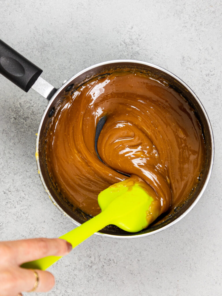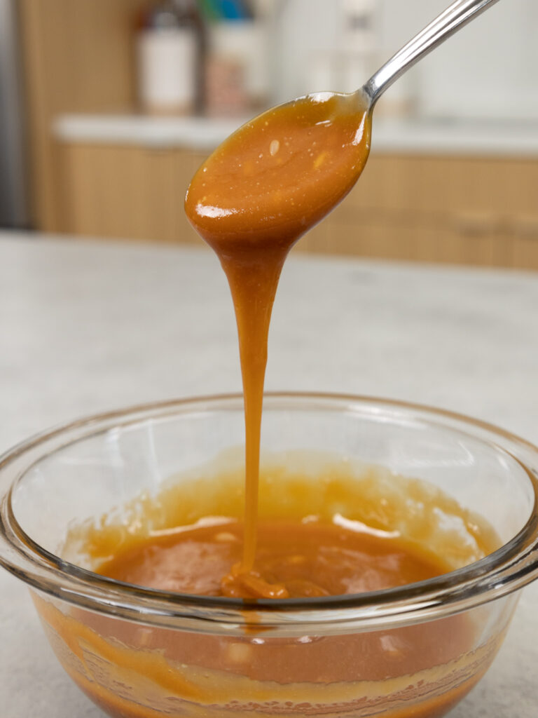 当你准备使用它,在微波热焦糖短间隔10秒,直到它是一个更可行的一致性就像下面的照片。