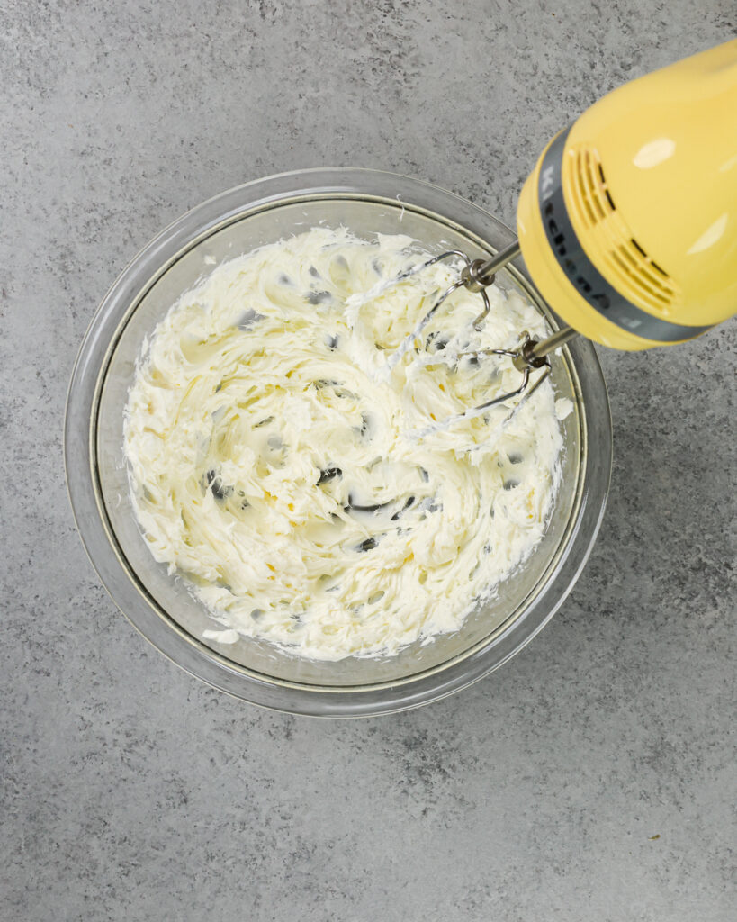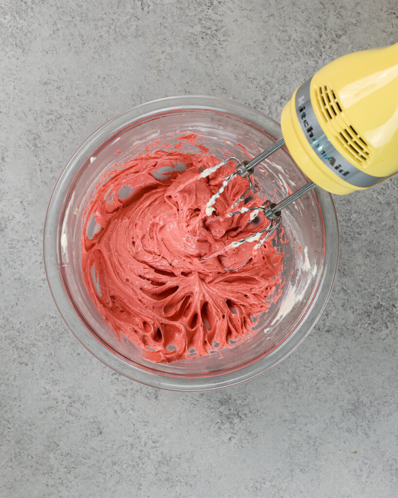 - 加入鸡蛋和香草精。混合在一个中速直到总和。