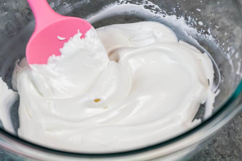 - 在1茶匙香草提取物中添加,并在中速混合直至合并。结霜应该看起来有光泽,一旦它准备好了。