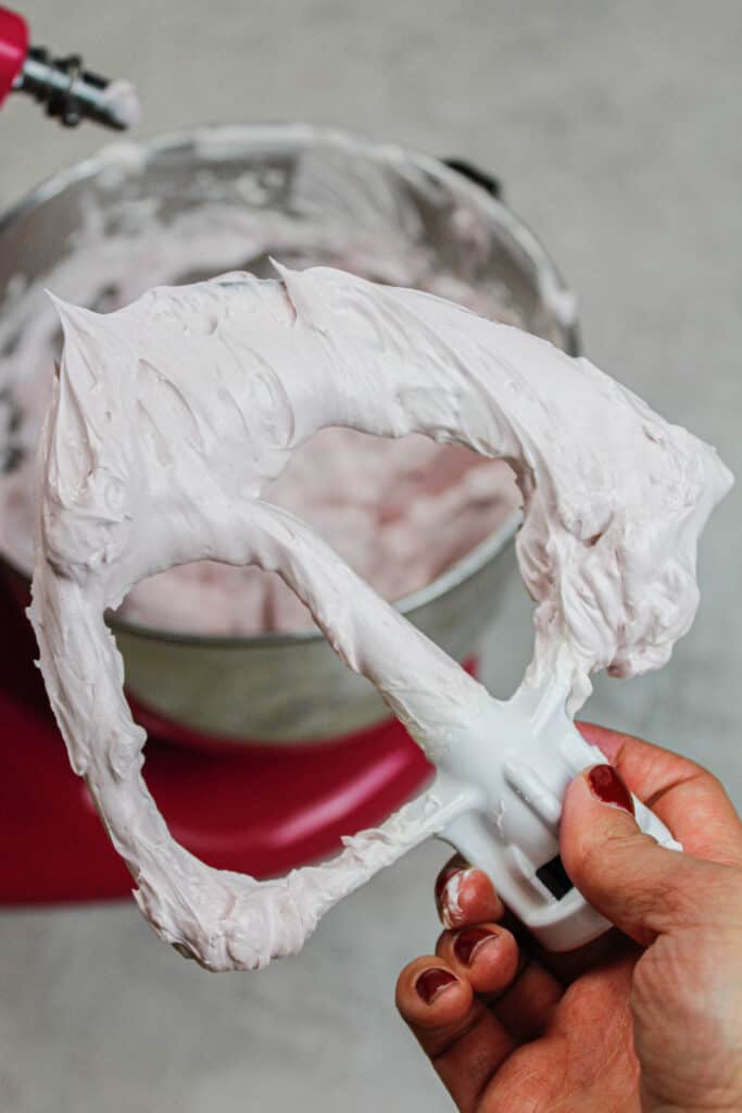 - 加入盐,香草精和紫色凝胶混合食用色素(如果需要)和低速度,直到完全合并。