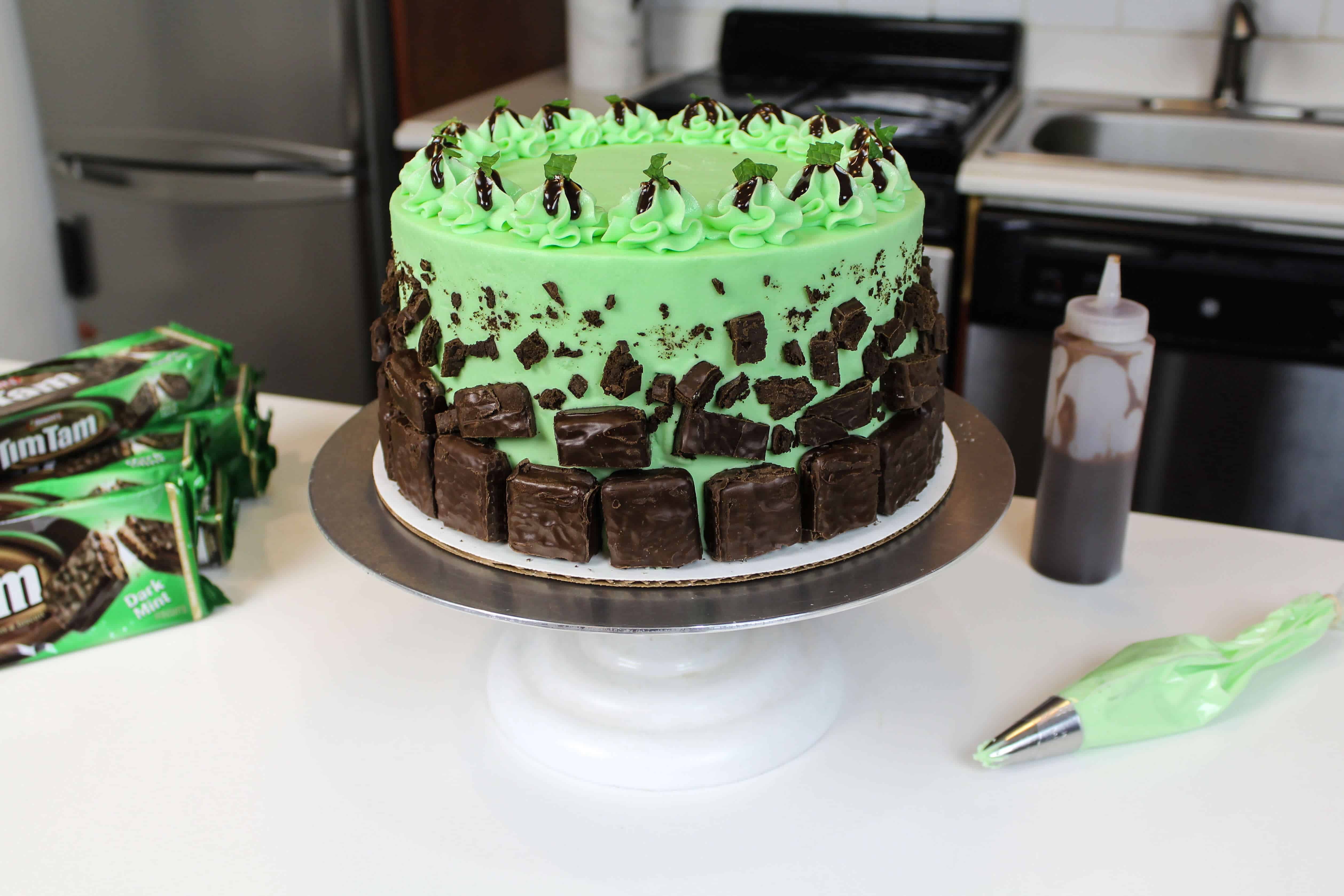 这个蛋糕是一部分多层蛋糕,部分冰盒蛋糕,并且它有一个秘密的成分...... DARK MINT TIMTAM®饼干!