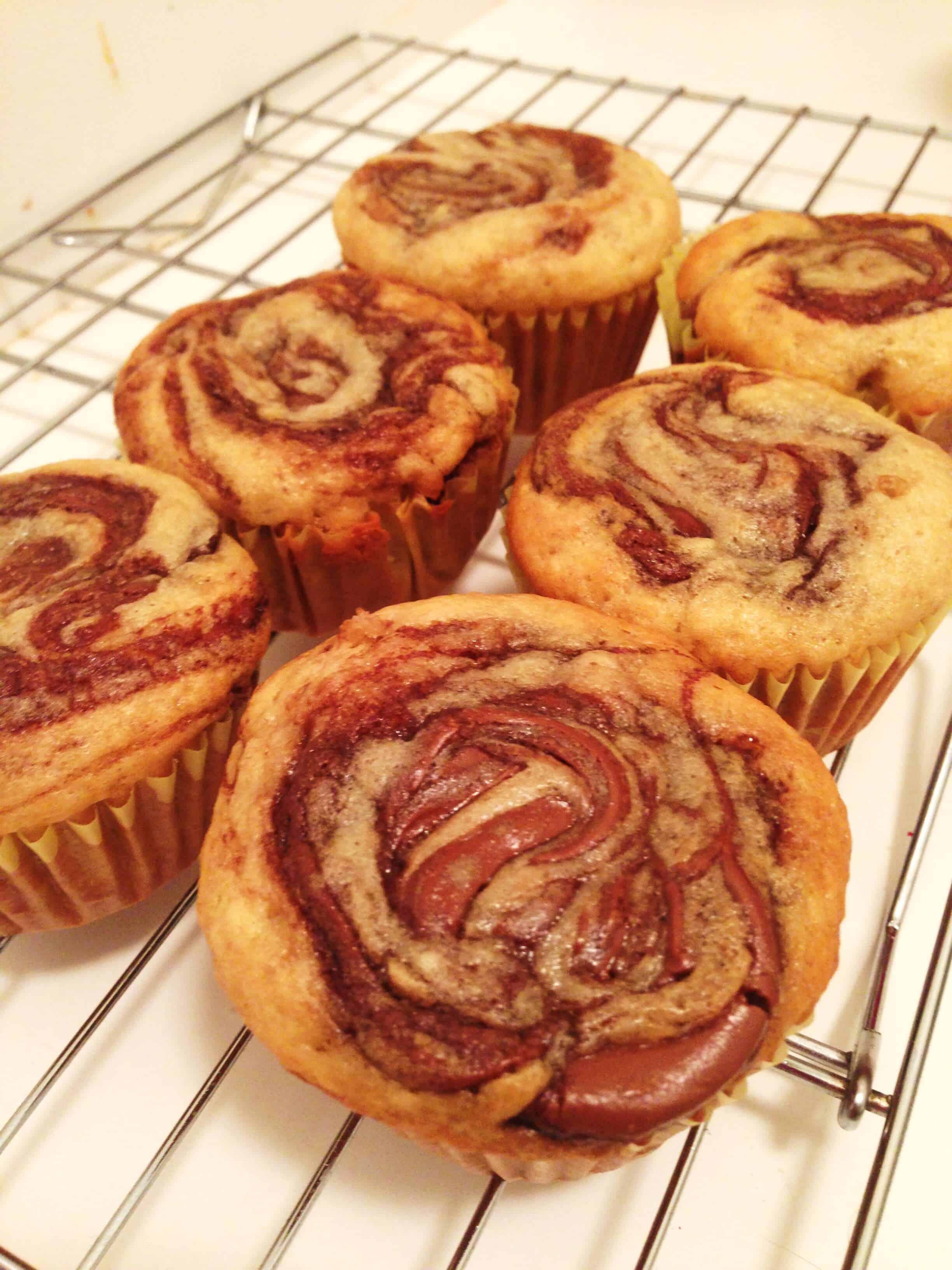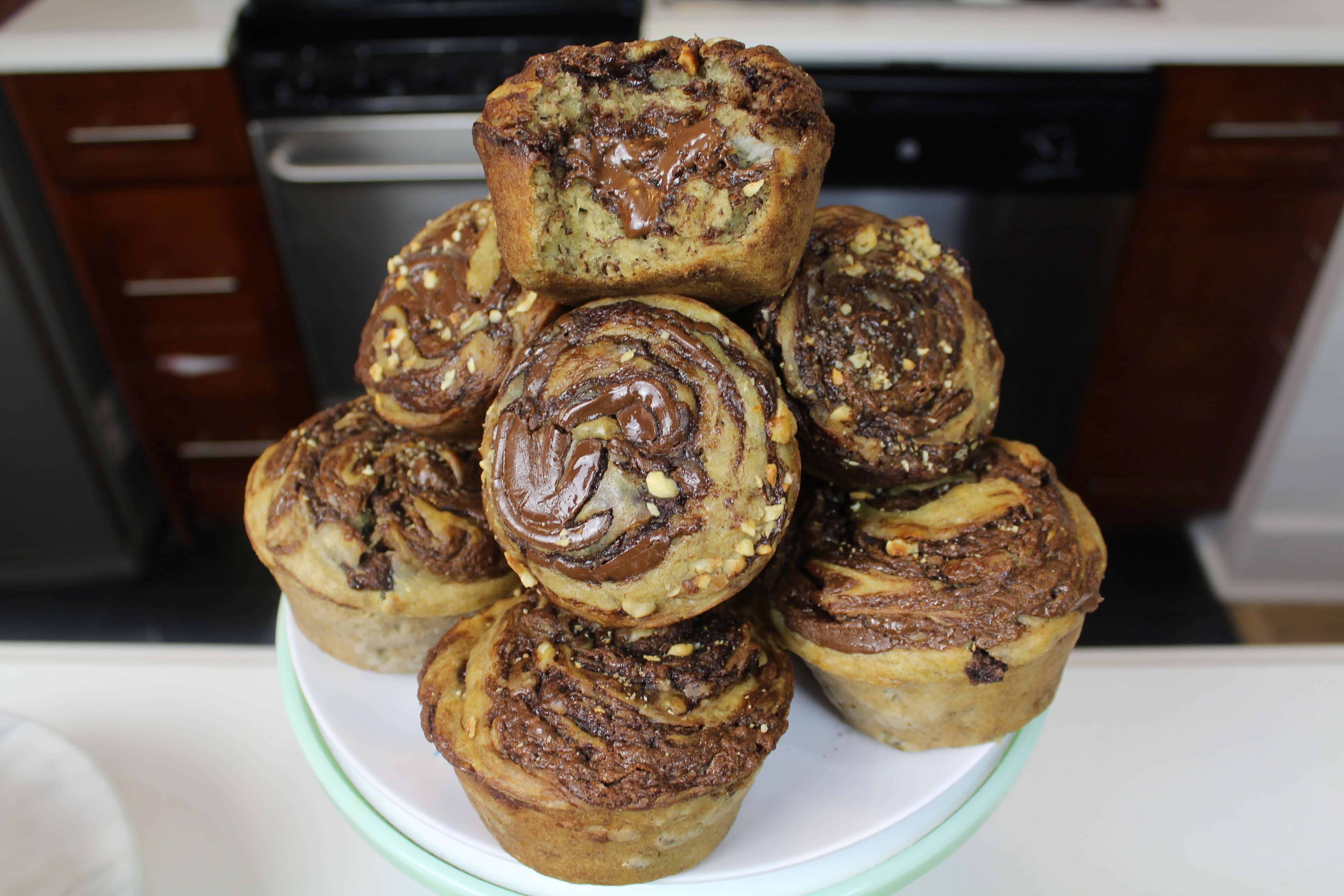 花生酱盘旋香蕉坚果松饼