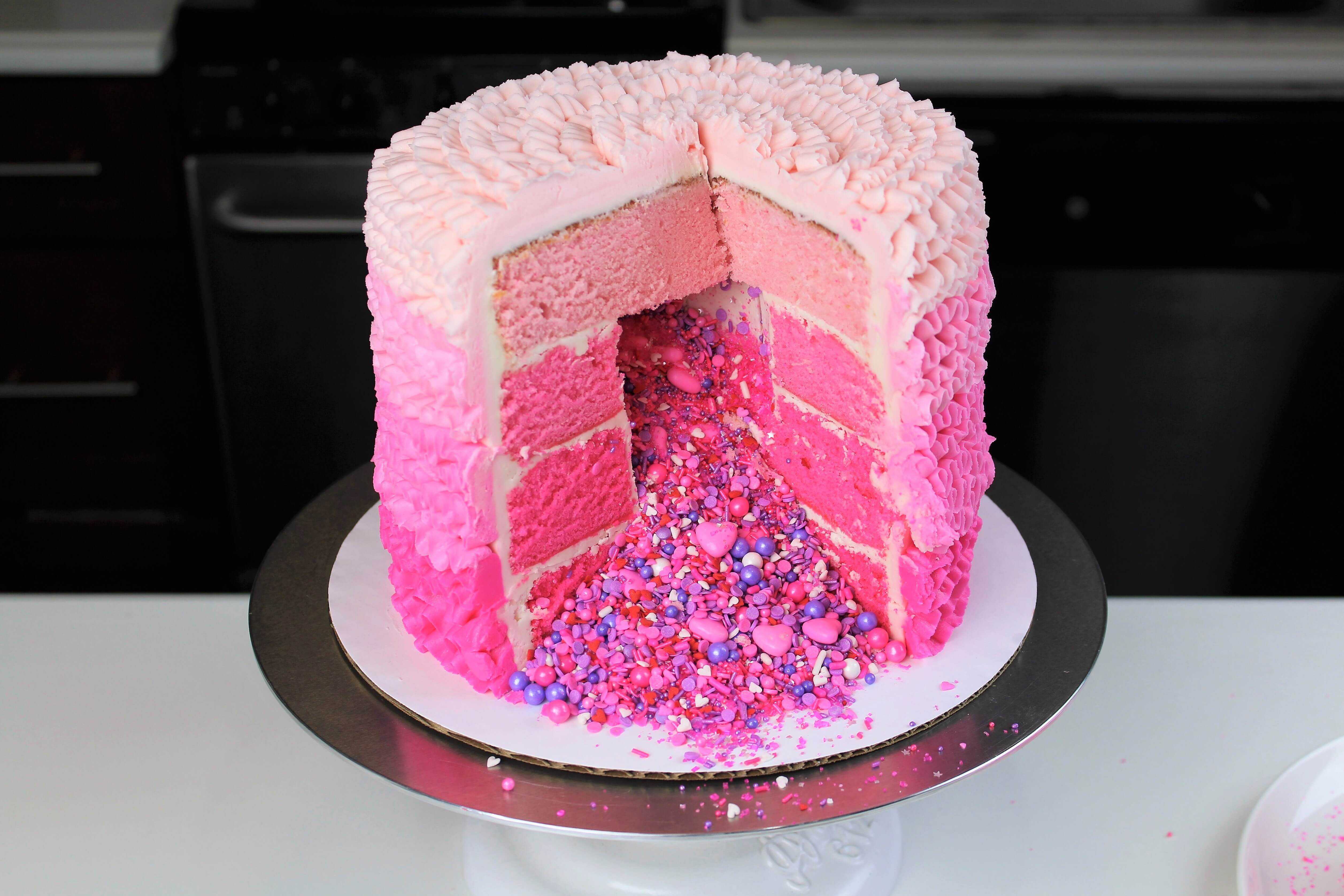 这个月我做了一个ombre,粉红色的皱褶,五彩纸屑蛋糕!!Try saying that ten times fast This cake was…