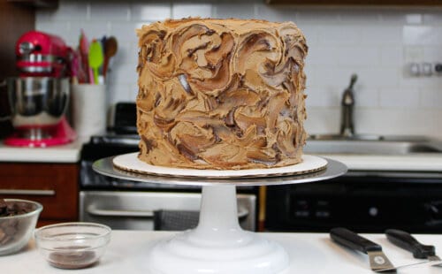 加巧克力奶油的黄色蛋糕