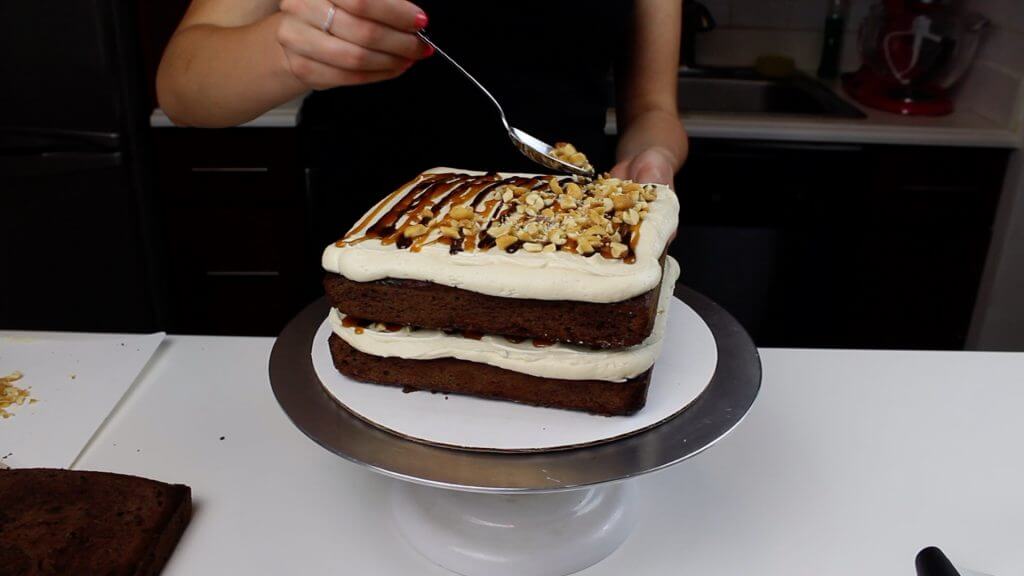1。填补PB糖霜的蛋糕和次小雨的焦糖和巧克力巧克力酱 -